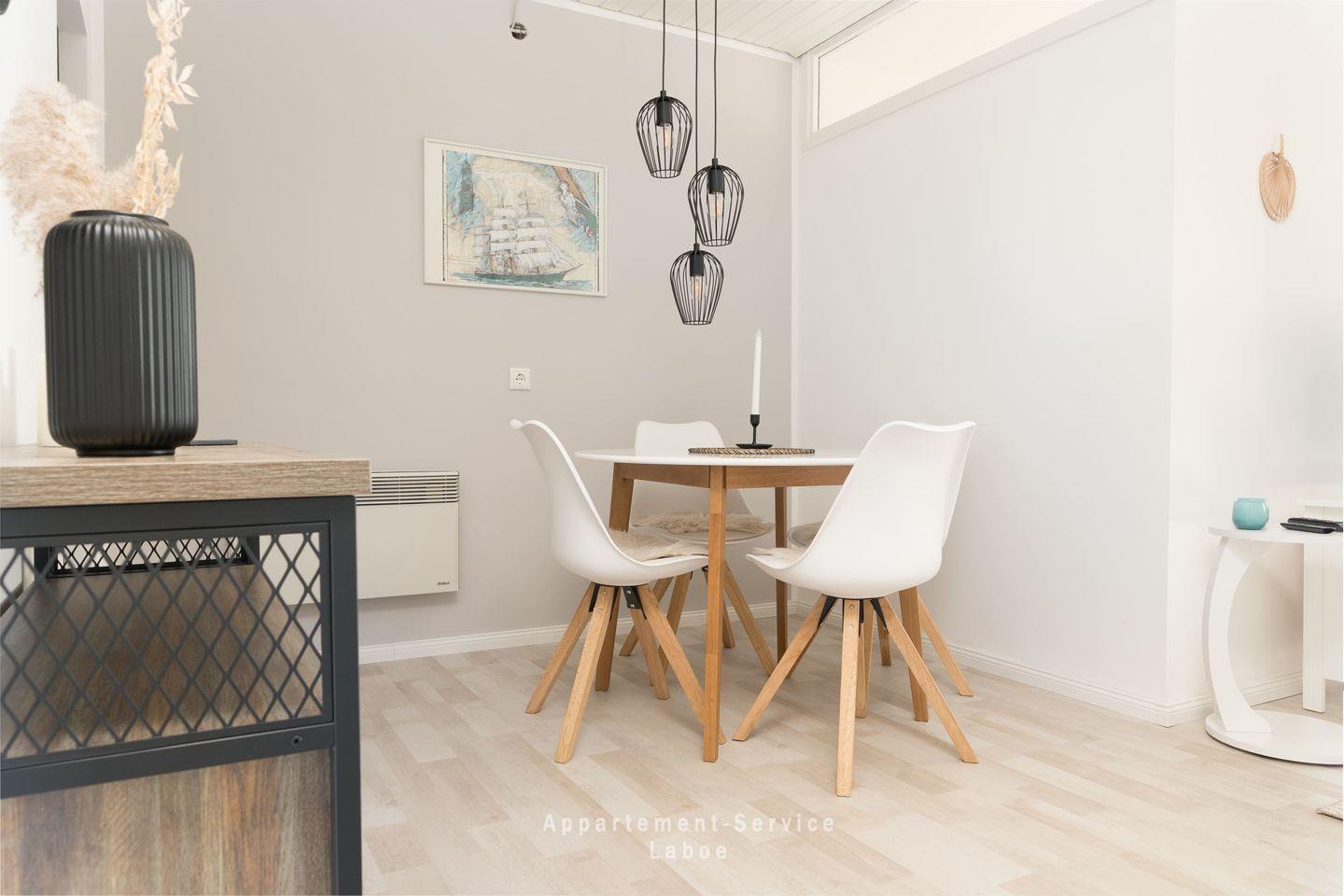 Die kleine, praktische Küche mit Essplatz lädt dazu ein, dir auch im Urlaub leckere Mahlzeiten zu zaubern. Ob ein schnelles Frühstück oder ein gemütliches Abendessen – hier lässt sich alles unkompliziert zubereiten und genießen. Deine Jacken und Schuhe finden ihren Platz im Flur mit Garderobe und dank des direkten Zugangs zur Terrasse kannst du die frische Ostseeluft in vollen Zügen genießen.