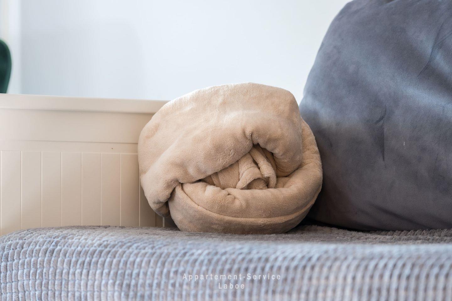 Das kombinierte Wohnschlafzimmer ist ein einladender Ort zum Entspannen. Die großzügige Schlafcouch ist tagsüber eine bequeme Sitzgelegenheit und verwandelt sich abends im Handumdrehen in ein gemütliches Bett. Im separaten Schlafzimmer erwartet dich ein französisches Doppelbett (140 x 200), in dem du nach einem erlebnisreichen Tag wunderbar abschalten kannst.