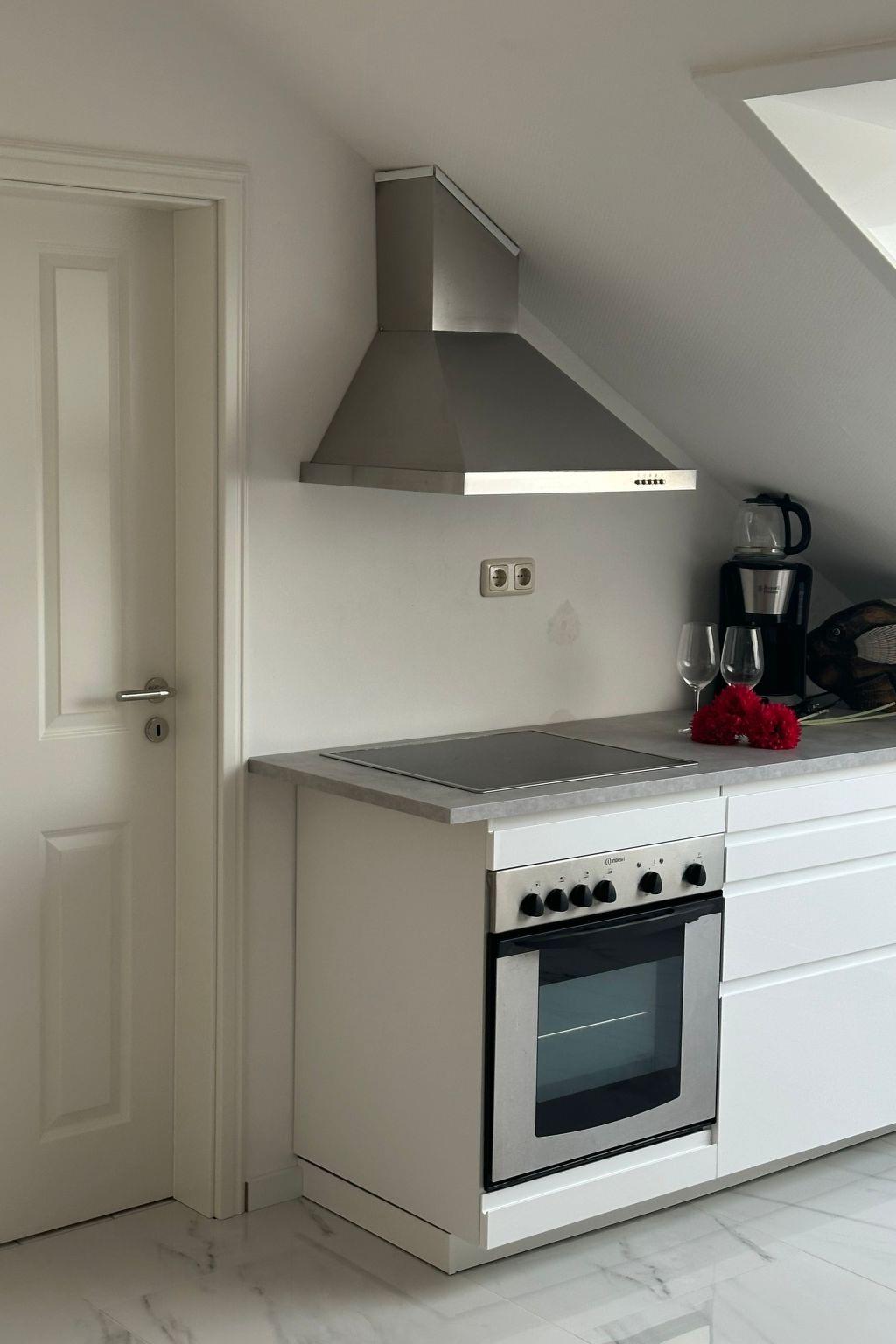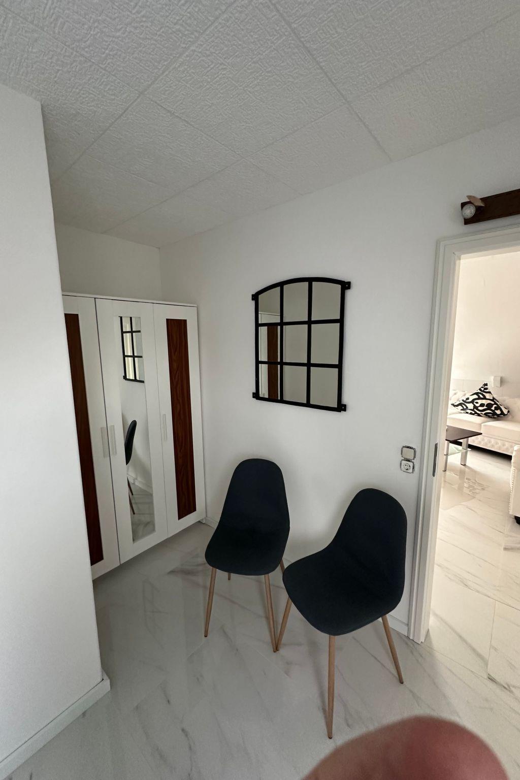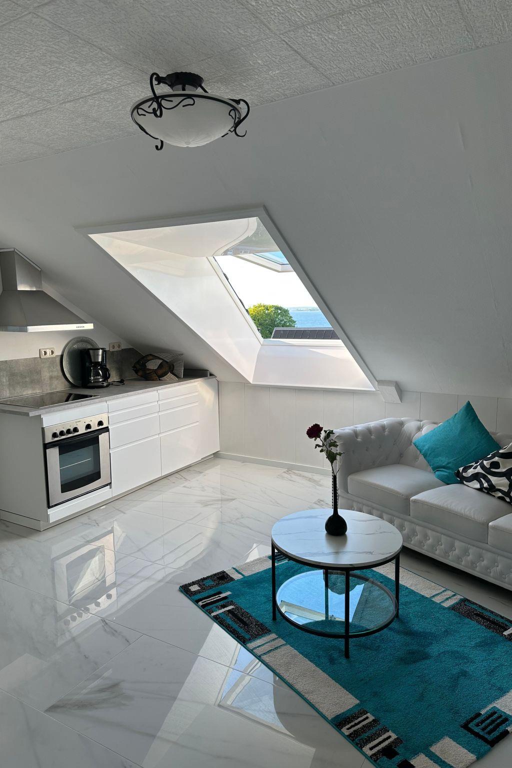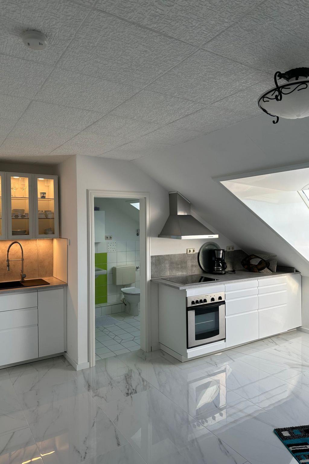 Im Inneren erwartet Sie eine perfekt ausgestattete Wohnung, die modernen Komfort mit gemütlichem Ambiente verbindet. Die Küche ist mit allem ausgestattet, was das Herz begehrt, inklusive Kaffeemaschine und Wasserkocher für gemütliche Morgenstunden. Der Wohn- und Essbereich ist der ideale Ort, um gemeinsame Mahlzeiten zu genießen oder einfach zu entspannen. Das Schlafzimmer mit einem komfortablen Doppelbett verspricht erholsame Nächte. Das Highlight: Überall in der Wohnung sorgt eine Fußbodenheizung für wohlige Wärme. Das moderne Duschbad lässt ebenfalls keine Wünsche offen.