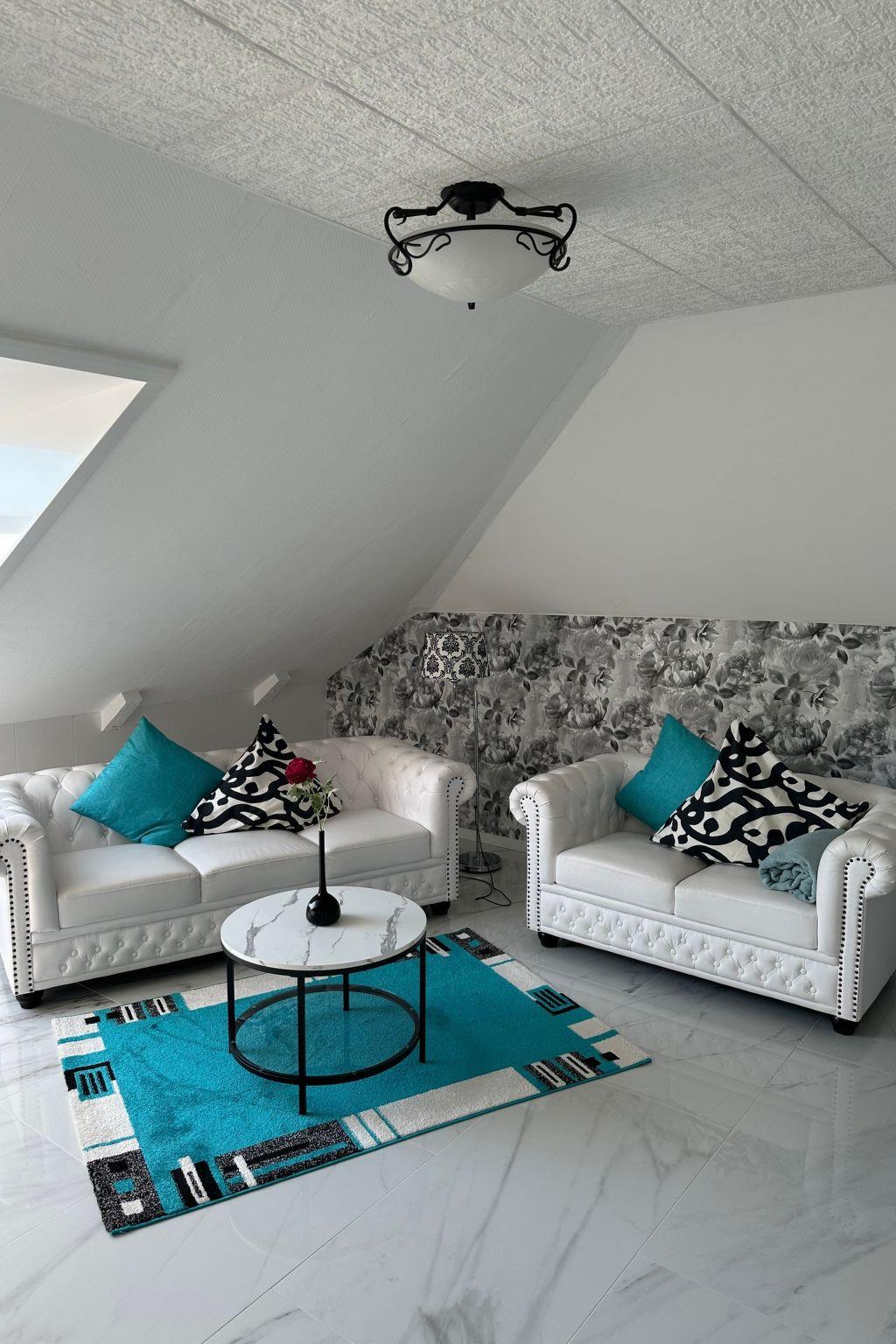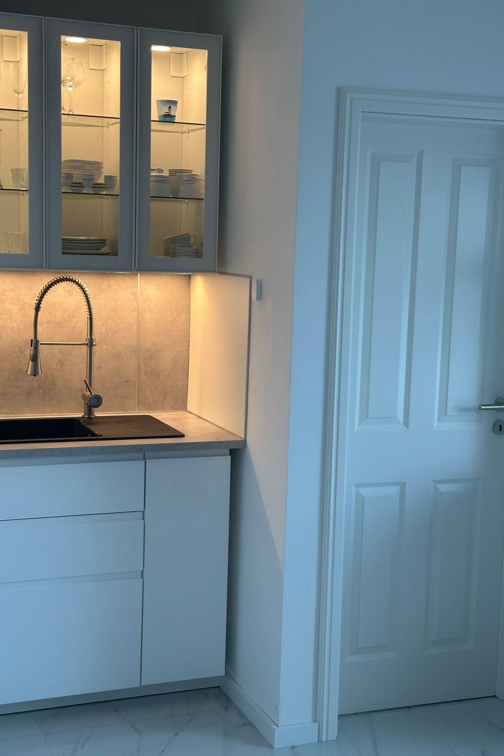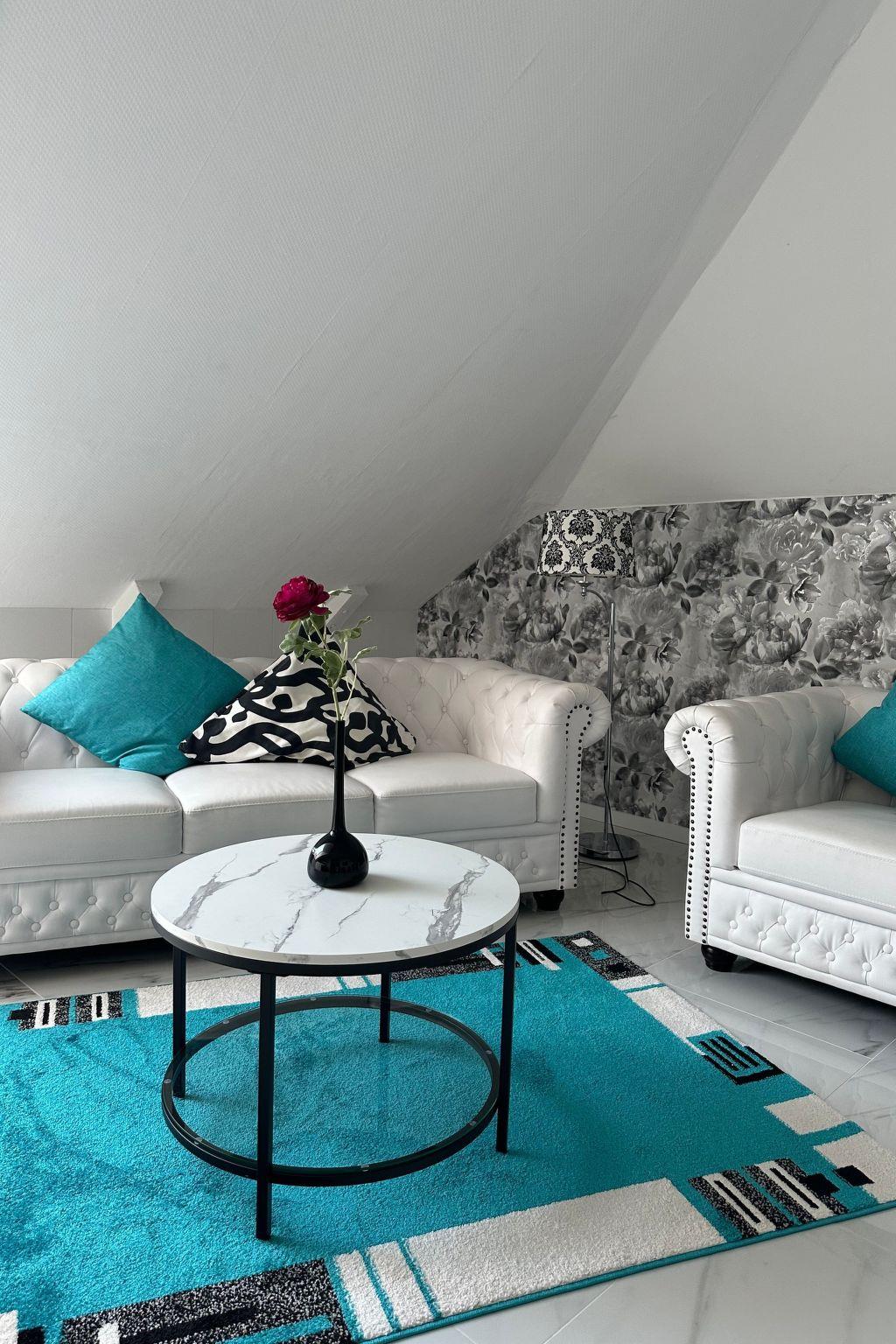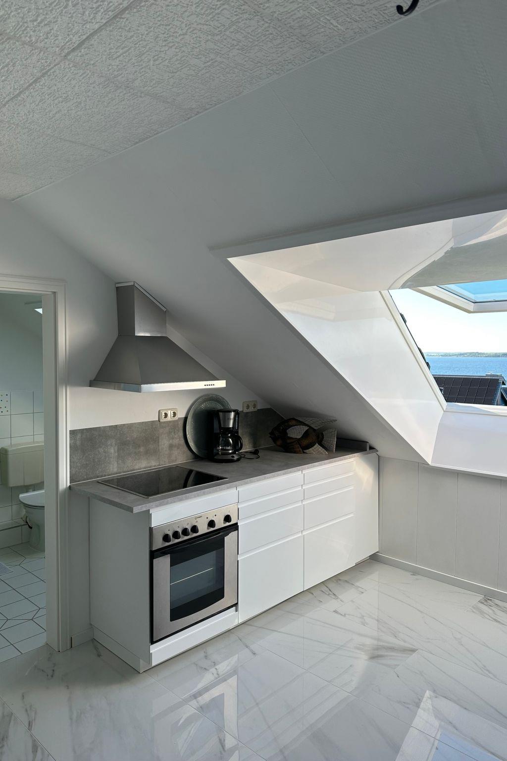 Im Inneren erwartet Sie eine perfekt ausgestattete Wohnung, die modernen Komfort mit gemütlichem Ambiente verbindet. Die Küche ist mit allem ausgestattet, was das Herz begehrt, inklusive Kaffeemaschine und Wasserkocher für gemütliche Morgenstunden. Der Wohn- und Essbereich ist der ideale Ort, um gemeinsame Mahlzeiten zu genießen oder einfach zu entspannen. Das Schlafzimmer mit einem komfortablen Doppelbett verspricht erholsame Nächte. Das Highlight: Überall in der Wohnung sorgt eine Fußbodenheizung für wohlige Wärme. Das moderne Duschbad lässt ebenfalls keine Wünsche offen.