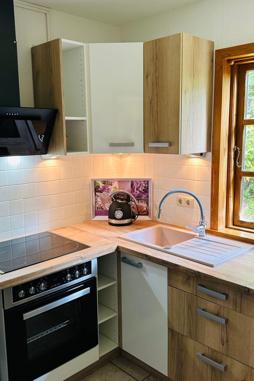 Das Innere des Ferienhauses besticht durch ein sorgfältig konzipiertes Raumangebot, das einen erholsamen Aufenthalt garantiert. Ein separates Schlafzimmer bietet den perfekten Rückzugsort nach einem Tag voller Entdeckungen. Hinzukommt ein großzügiges Wohnzimmer, das mit allem ausgestattet ist, was Ihr Herz begehrt. Die separate Küche ermöglicht es Ihnen, sich nach Lust und Laune kulinarisch auszuleben – unterstützt durch moderne Annehmlichkeiten wie eine Kaffeemaschine und einen Wasserkocher.
