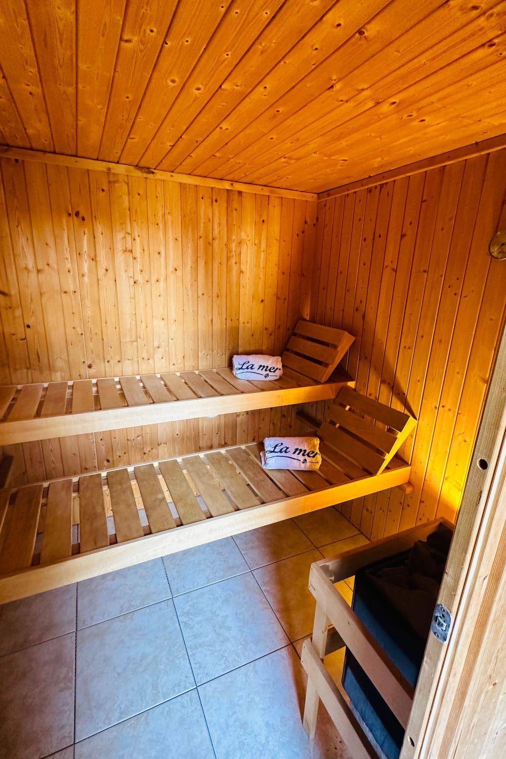 Der Außenbereich lädt mit seiner sonnigen Terrasse, hochwertigen Gartenmöbeln und einem eigenen Grillplatz zum Verweilen ein. Nicht zu vergessen das Highlight – das separate Saunahaus, das Ihnen zu jeder Wetterlage Entspannung pur verspricht.