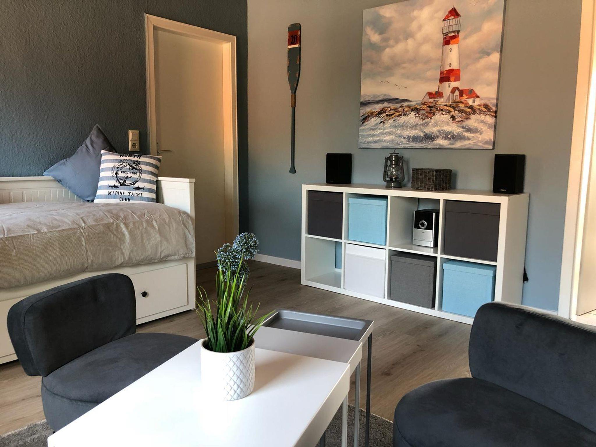• 1 Wohnzimmermit Sitzgarnitur und TV