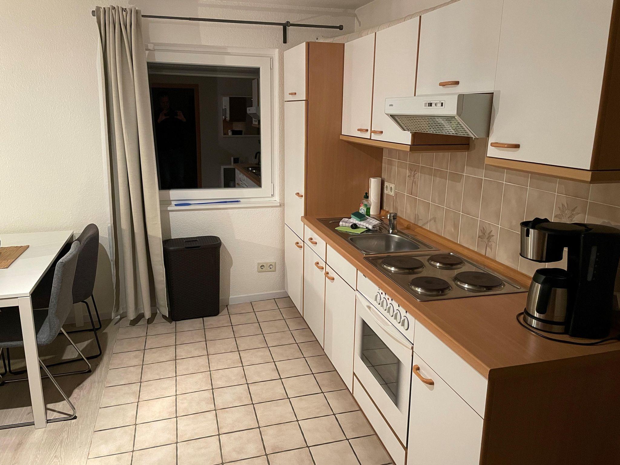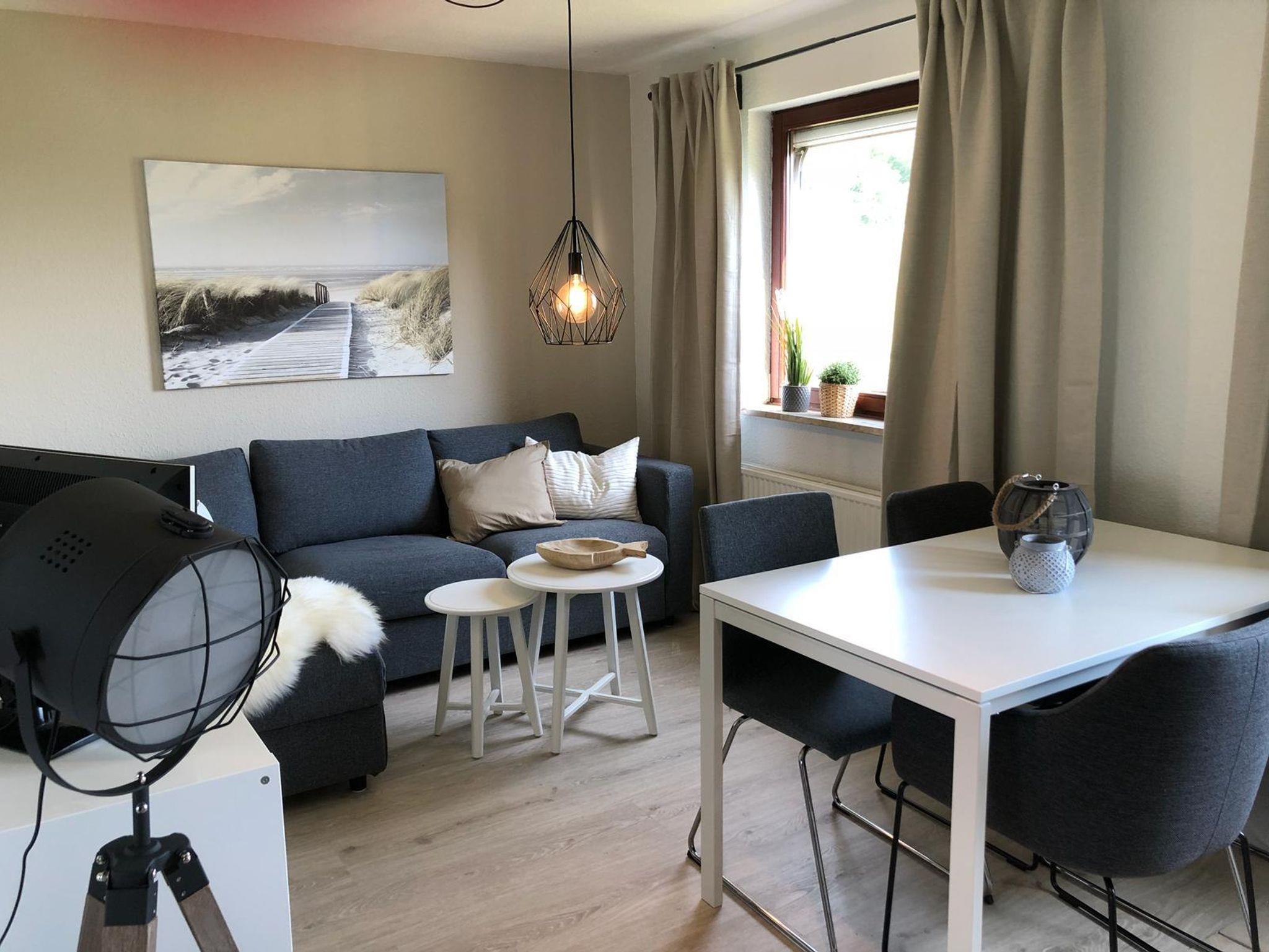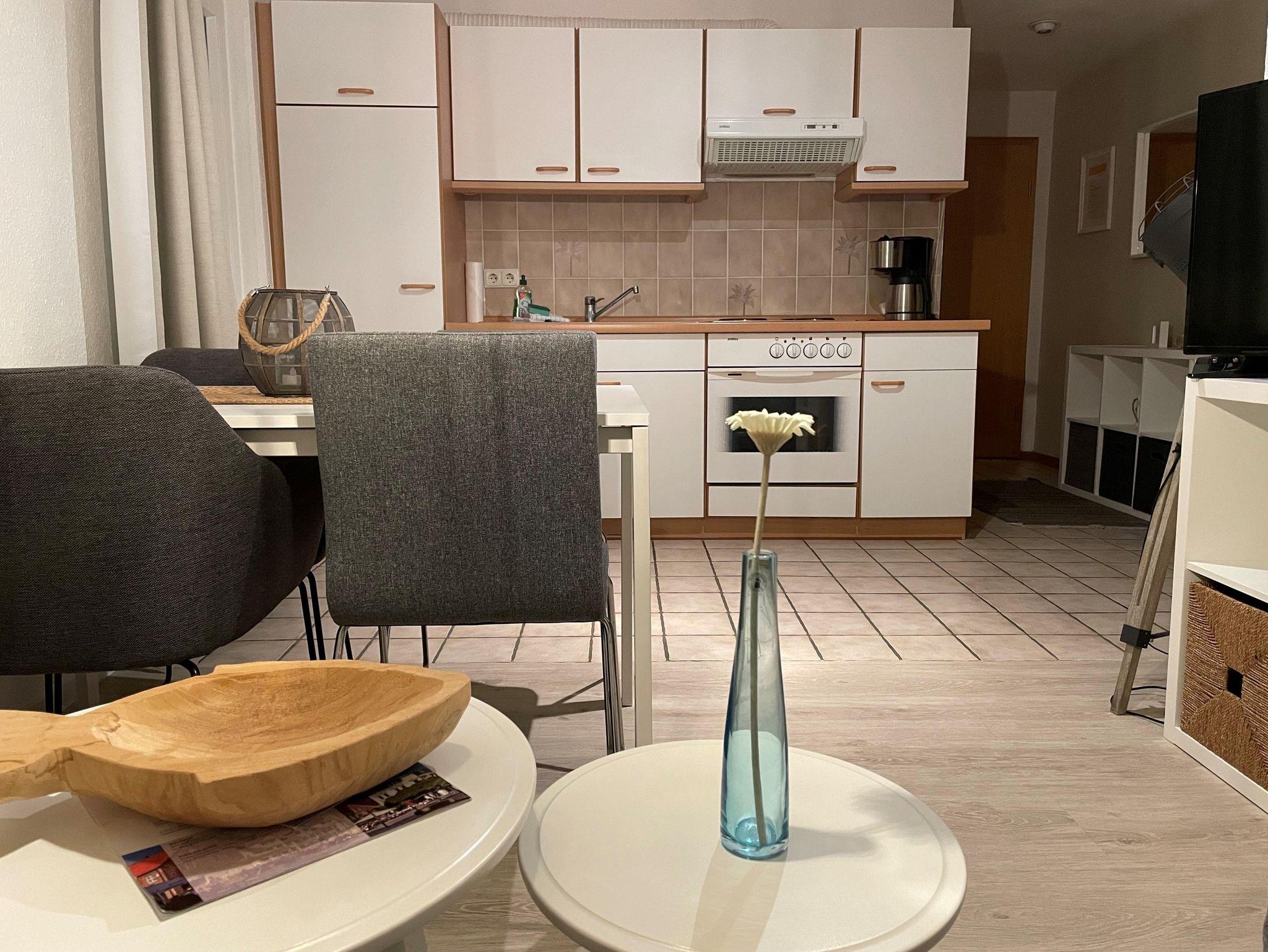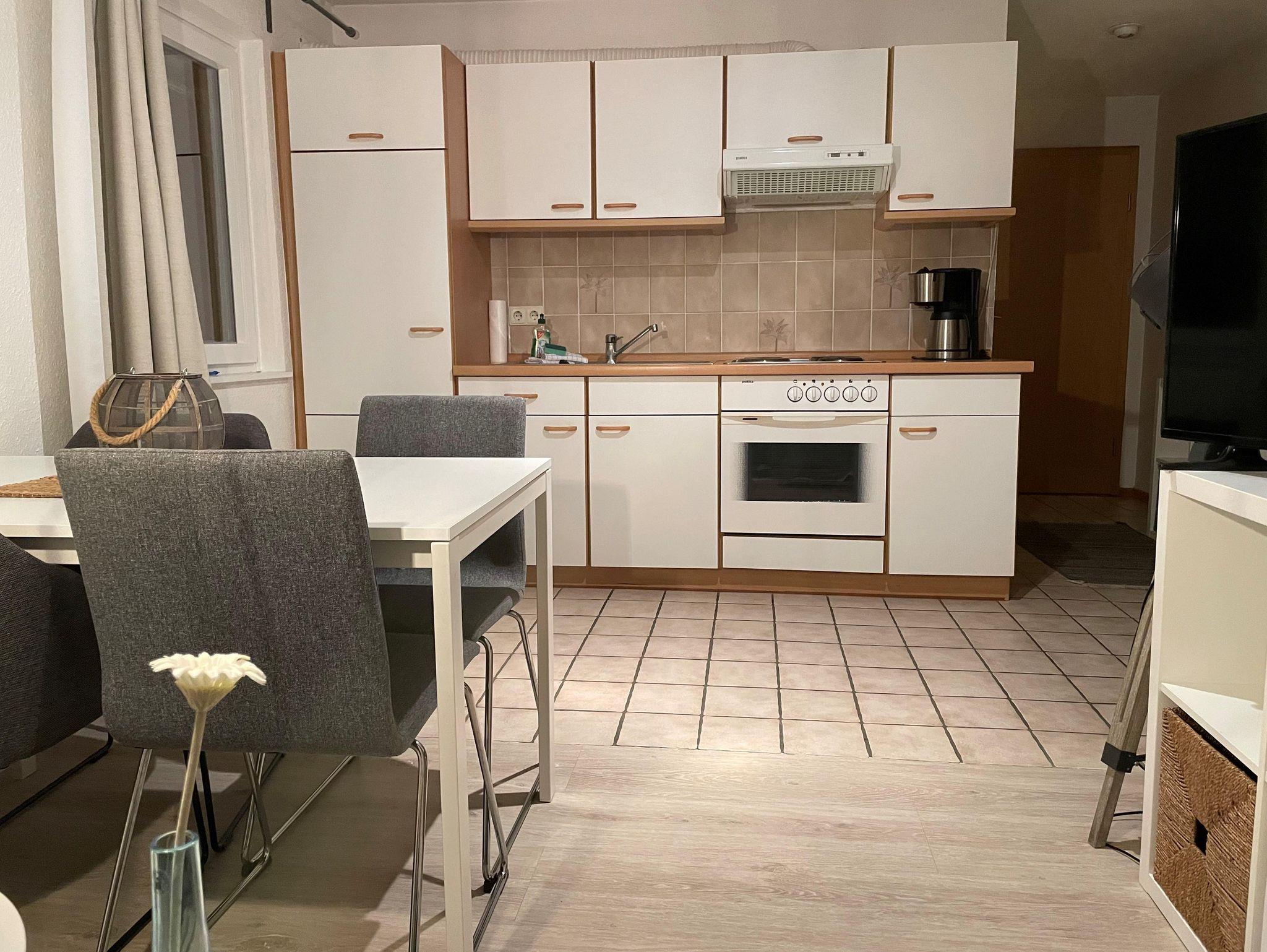 • 1 Wohnzimmer mit Sitzgarnitur, TV und vollausgestatteter Küchenzeile (Wohnküche)