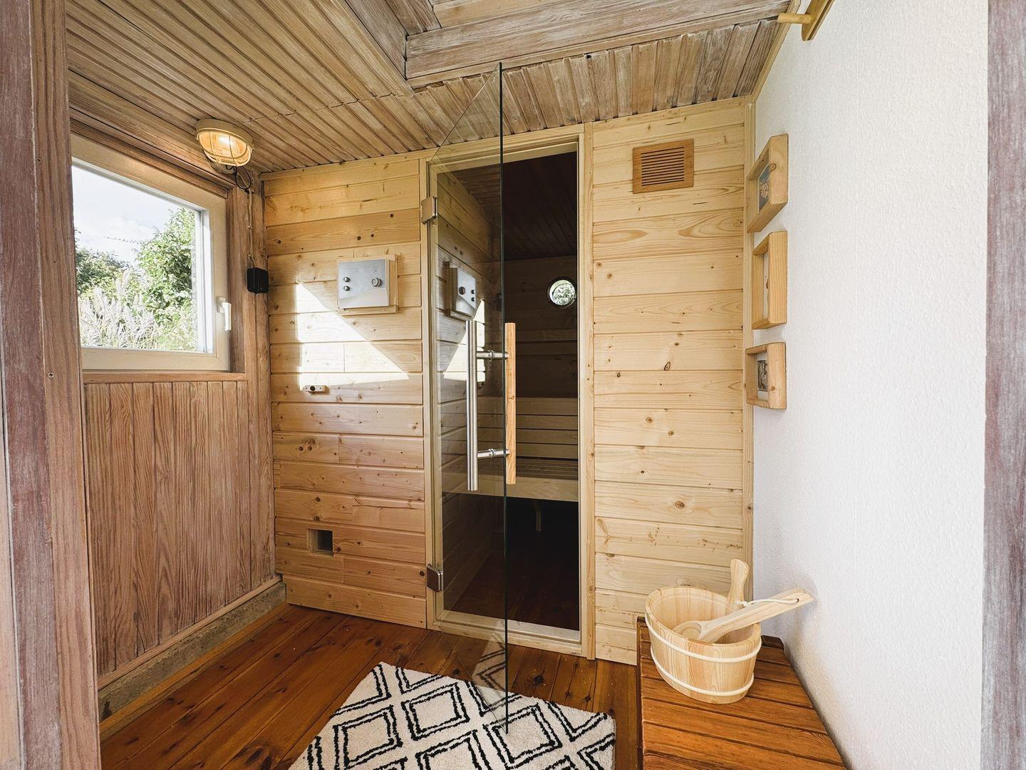 • Wintergarten mit finnischer Sauna, Relaxliegen, Bücherauswahl