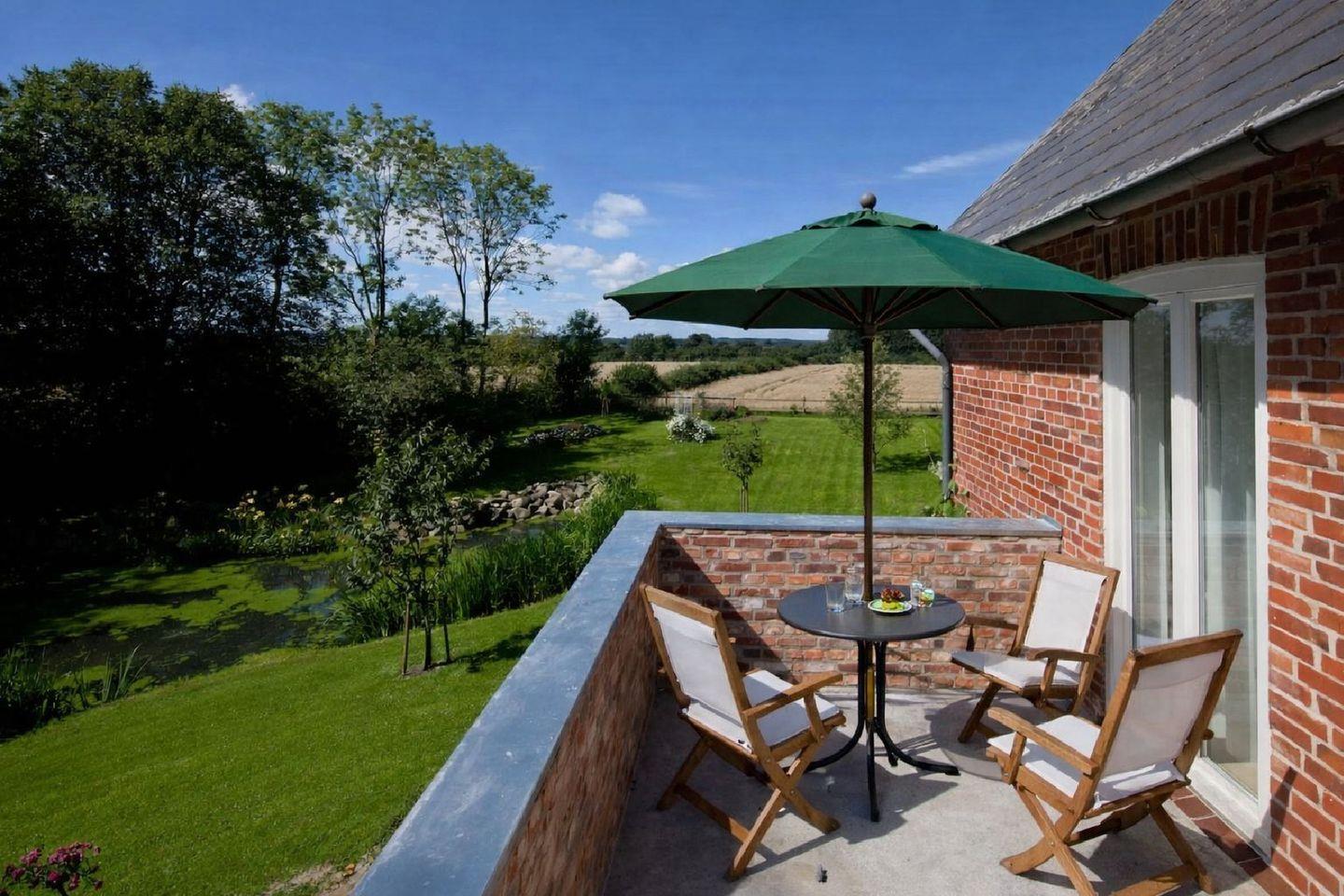 Moderne Ferienwohnung mit historischem Charme und Blick auf den Hausteich in Westerholz.