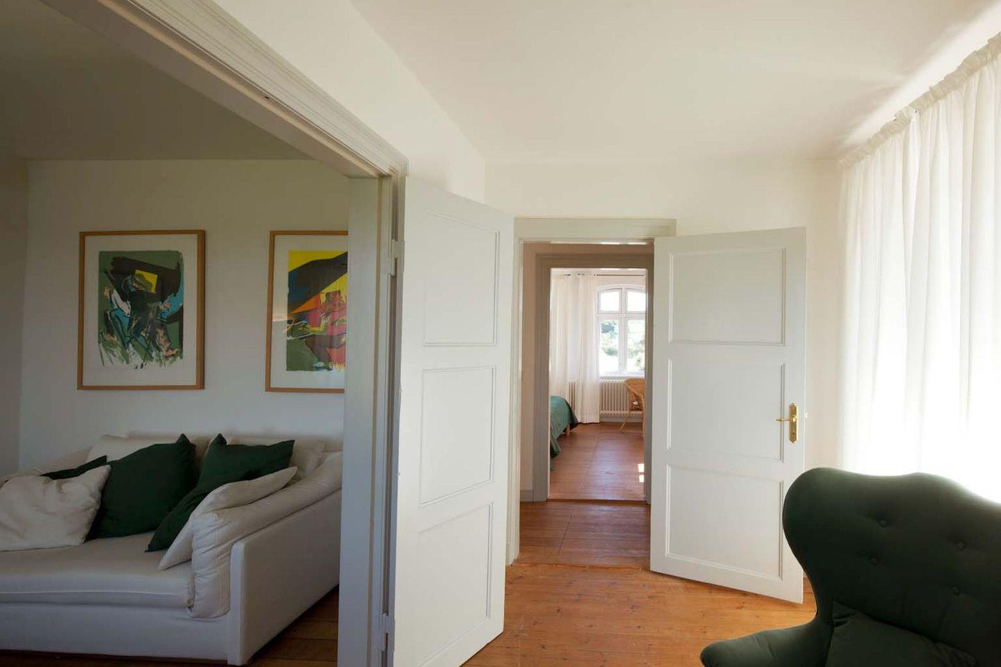 Der Hof besticht durch seine einmalige Lage nur 1000 Meter Luftlinie vom Ufer der Flensburger Förde entfernt. Der ruhige Naturstrand mit flachem Wasser ist in nur wenigen Fahrradminuten erreichbar und eignet sich ideal zum entspannten und sicheren Schwimmen. Geschützt wird die Bucht von einer Steilküste, die von einem wunderschönen Buchenwald bewachsen ist – ein perfekter Ort für Ruhe, Natur und Erholung.