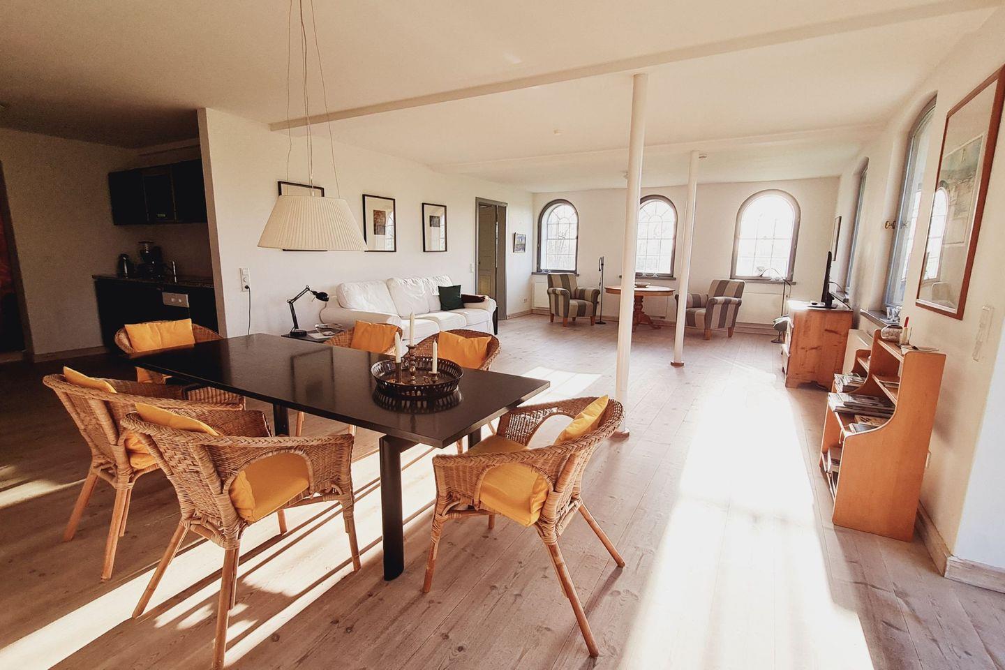 Diese Erdgeschosswohnung auf dem Hof Kiekut ist die größte der Anlage und überzeugt durch viel Raum, Licht und eine ruhige Lage. Die nach Südwesten ausgerichtete Wohnung bietet auf rund 120 m² beste Voraussetzungen für einen entspannten Aufenthalt – ideal für Familien, Paare mit Besuch oder kleine Freundesgruppen. Die Wohnung ist für bis zu vier Personen ausgelegt.
