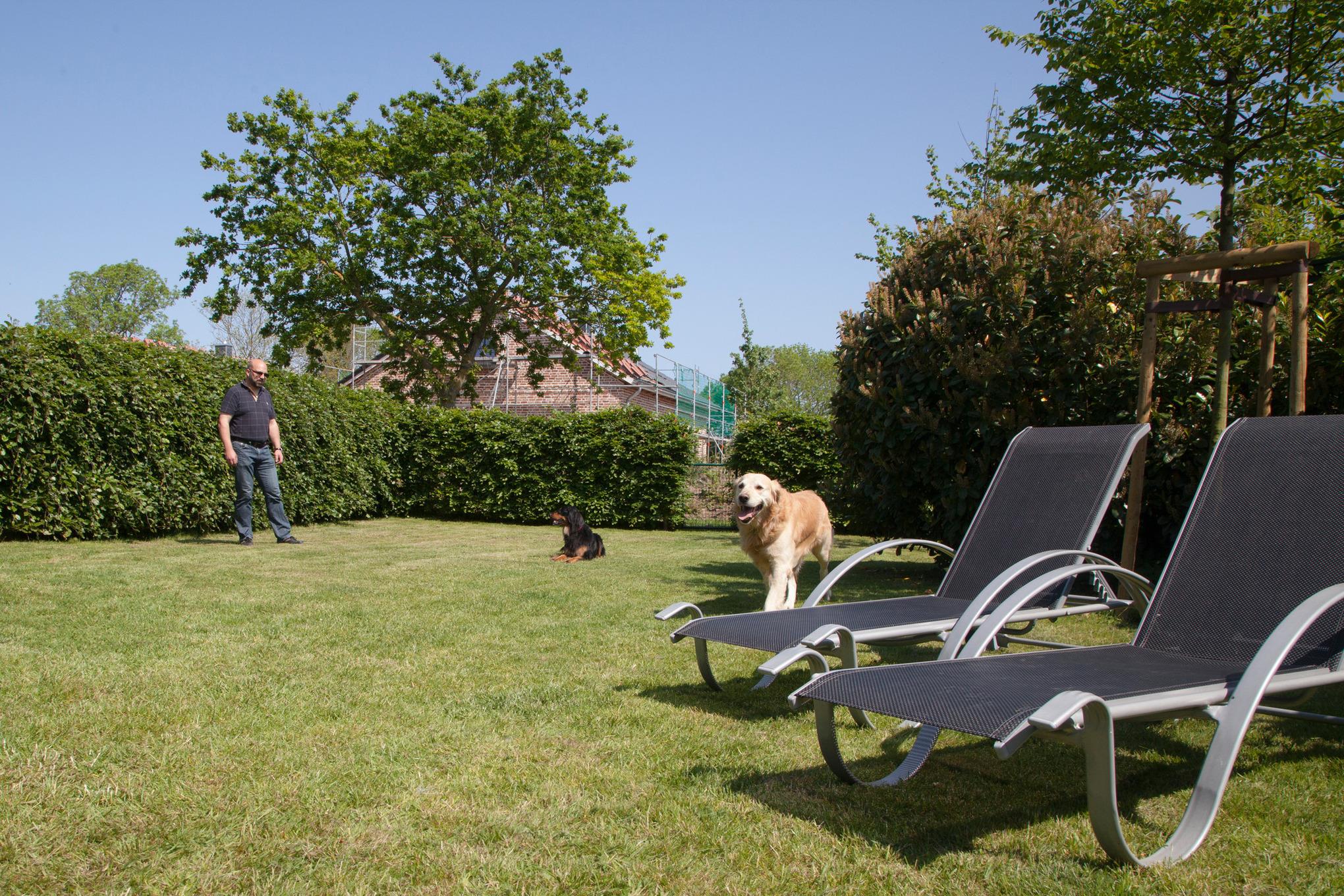 Hunde sind in allen Wohnungen herzlich willkommen und können sich im Garten nach Herzenslust austoben.