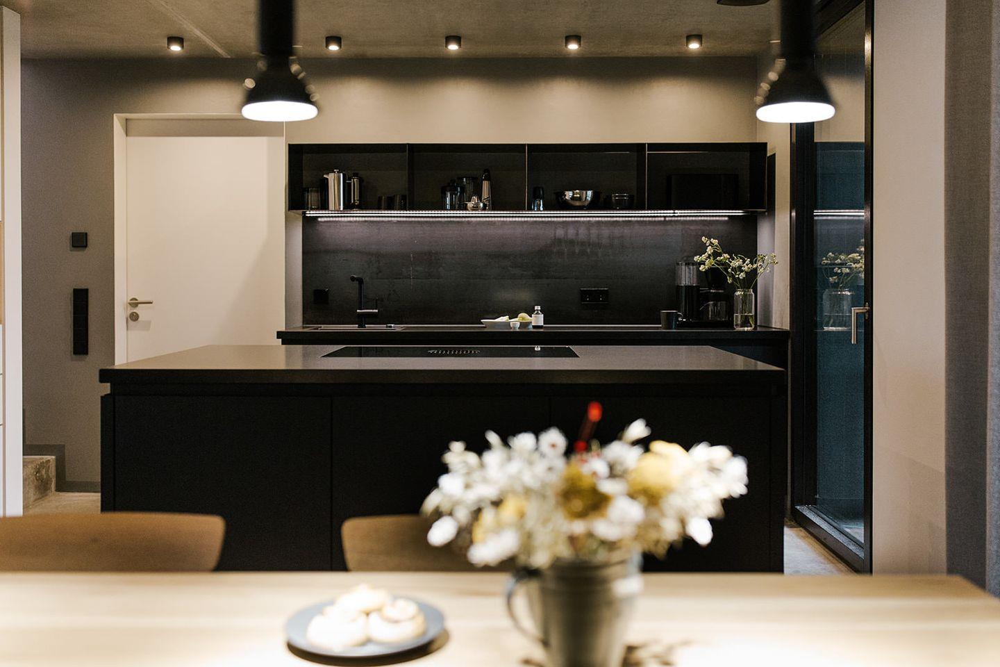 Im Erdgeschoss öffnet sich eine helle Wohnküche, die fließend in den Wohnbereich übergeht. Mittelpunkt des Raumes ist der Kamin, der besonders in den kühleren Monaten für wohlige Wärme und eine ruhige, behagliche Stimmung sorgt. Zusammen mit der hochwertigen Soundanlage, dem TV und einer kleinen DVD-Sammlung entsteht hier der perfekte Ort für entspannte Filmabende oder gesellige Stunden nach einem Tag an der Ostsee.