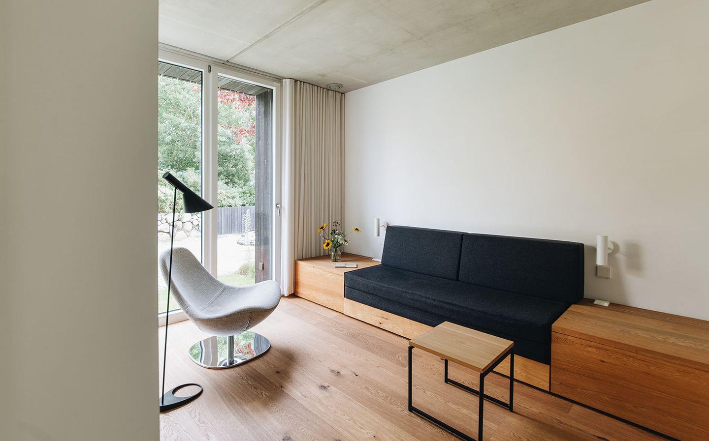 Die offene und top ausgestattete Küche lädt zum gemeinsamen Kochen und Tafeln am großen Holztisch ein. Im angrenzenden Wohnbereich können Sie es sich gemütlich machen. Hier spendet der Kamin in den kalten Jahreszeiten angenehme Wärme und schafft eine besinnliche Stimmung. Während Sie in diesen Bereichen gesellig beisammen sein können, bieten die großzügigen Schlafzimmer im Obergeschoss und die Bibliothek im Erdgeschoss ideale Rückzugsorte. Mit bis zu 4 Personen können Sie das Ferienhaus Darß mieten und darin Ihren Urlaub verbringen. Zur besonderen Ausstattung gehört die Sauna im Masterbad mit Badewanne, die für Leib und Seele gleichermaßen gut ist. Das Ferienhaus auf dem Darß ist somit auch der perfekte Ort für Ihr individuelles Verwöhnprogramm!