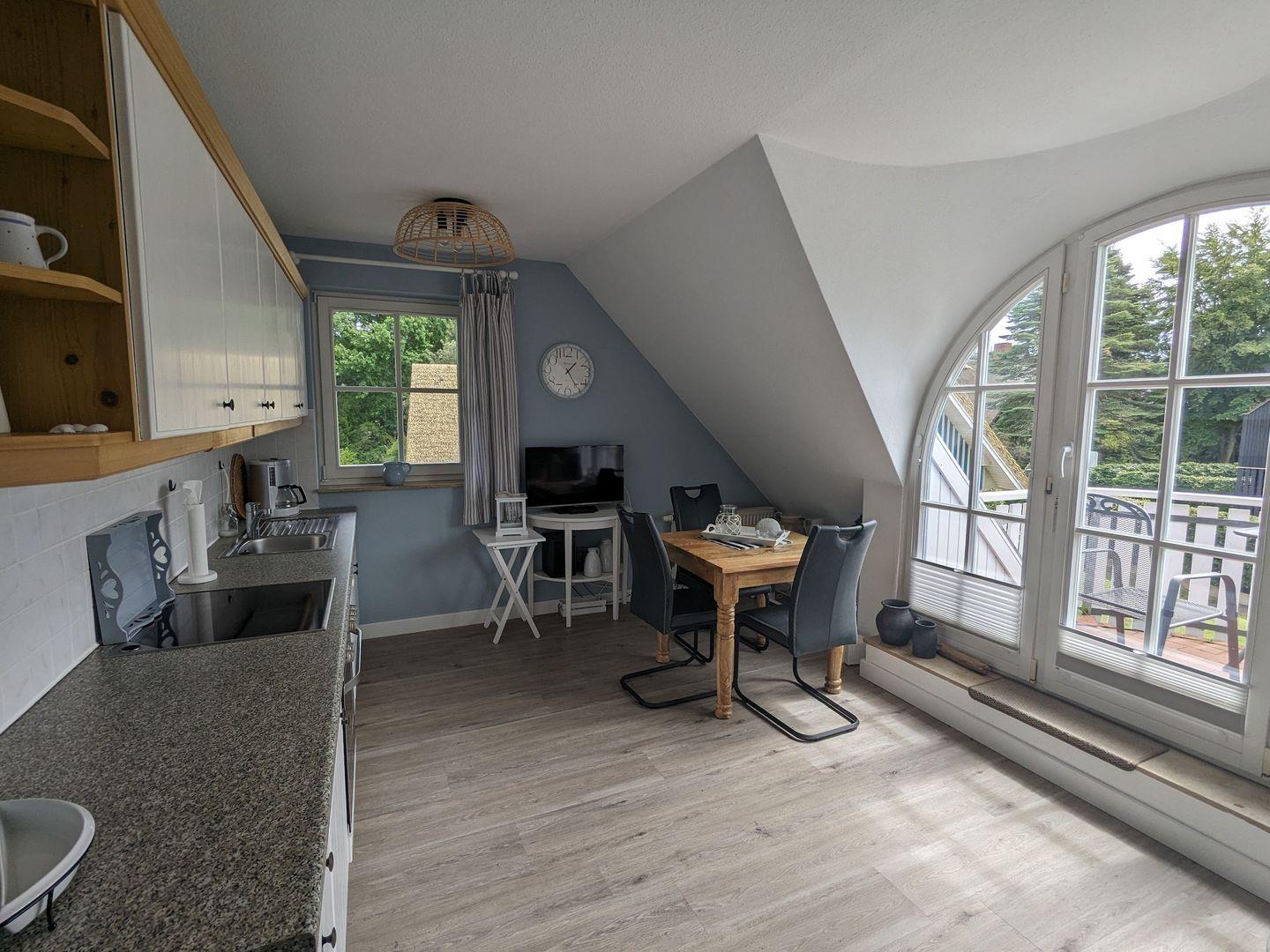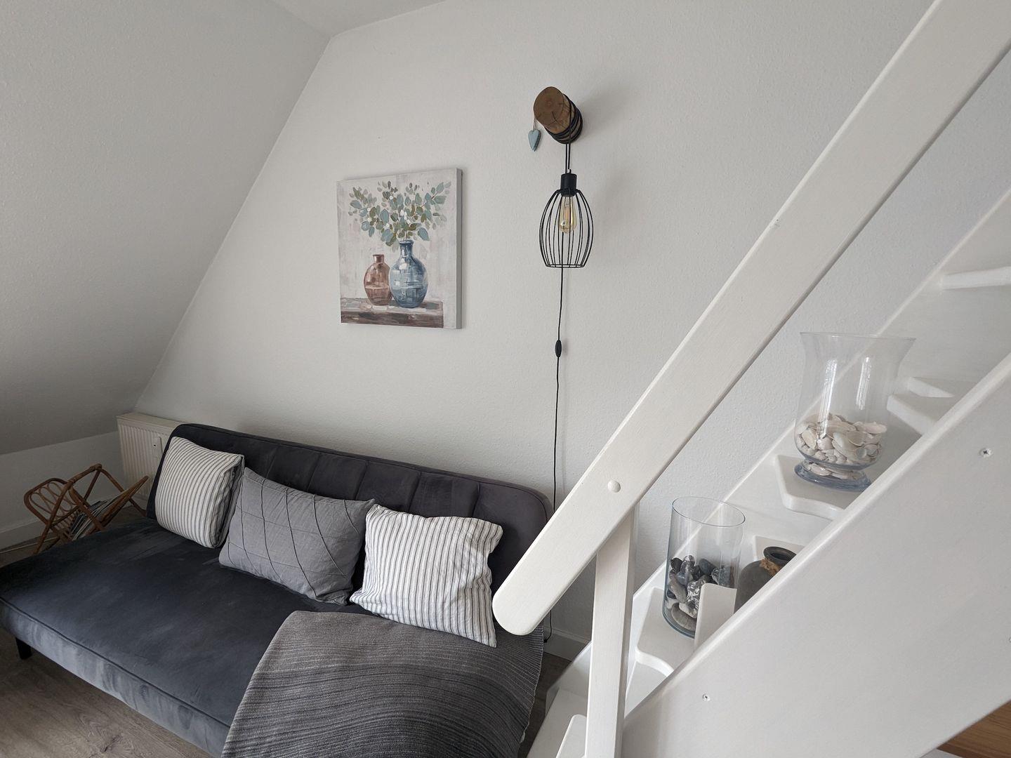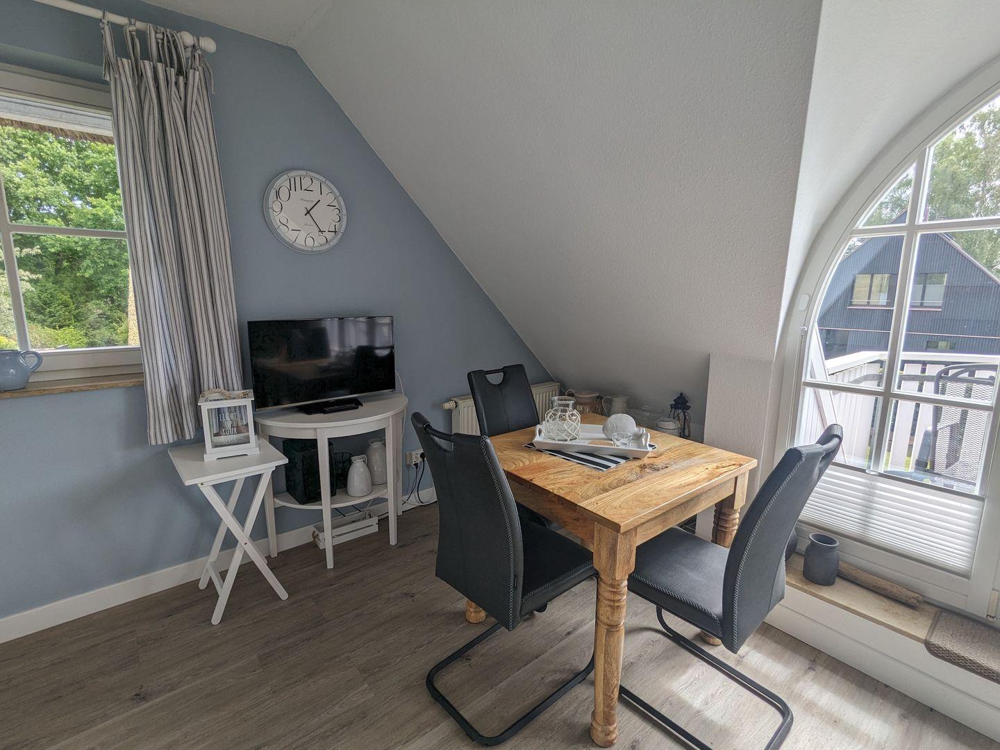 Lassen Sie die Seele baumeln in der im skandinavischen Chic liebevoll eingerichteten Ferienwohnung. Es erwartet Sie ein Wohn-Esszimmer mit offener Küche sowie ein großzügiges Schlafzimmer . Die Kleine Brise verfügt über zwei Balkone... Den Südbalkon können Sie vom Wohn- und Essbereich begehen und vom Schlafzmmer aus den Balkon, der Ihnen die Morgensonne in´s Gesicht scheinen lässt. Zum Weststrand radeln Sie nur ca. 20 Minuten mit dem Fahrrad und in zwei Minuten Fußweg stehen Sie auf dem Deich und können Ihren Blick über den Bodden schweifen lassen.