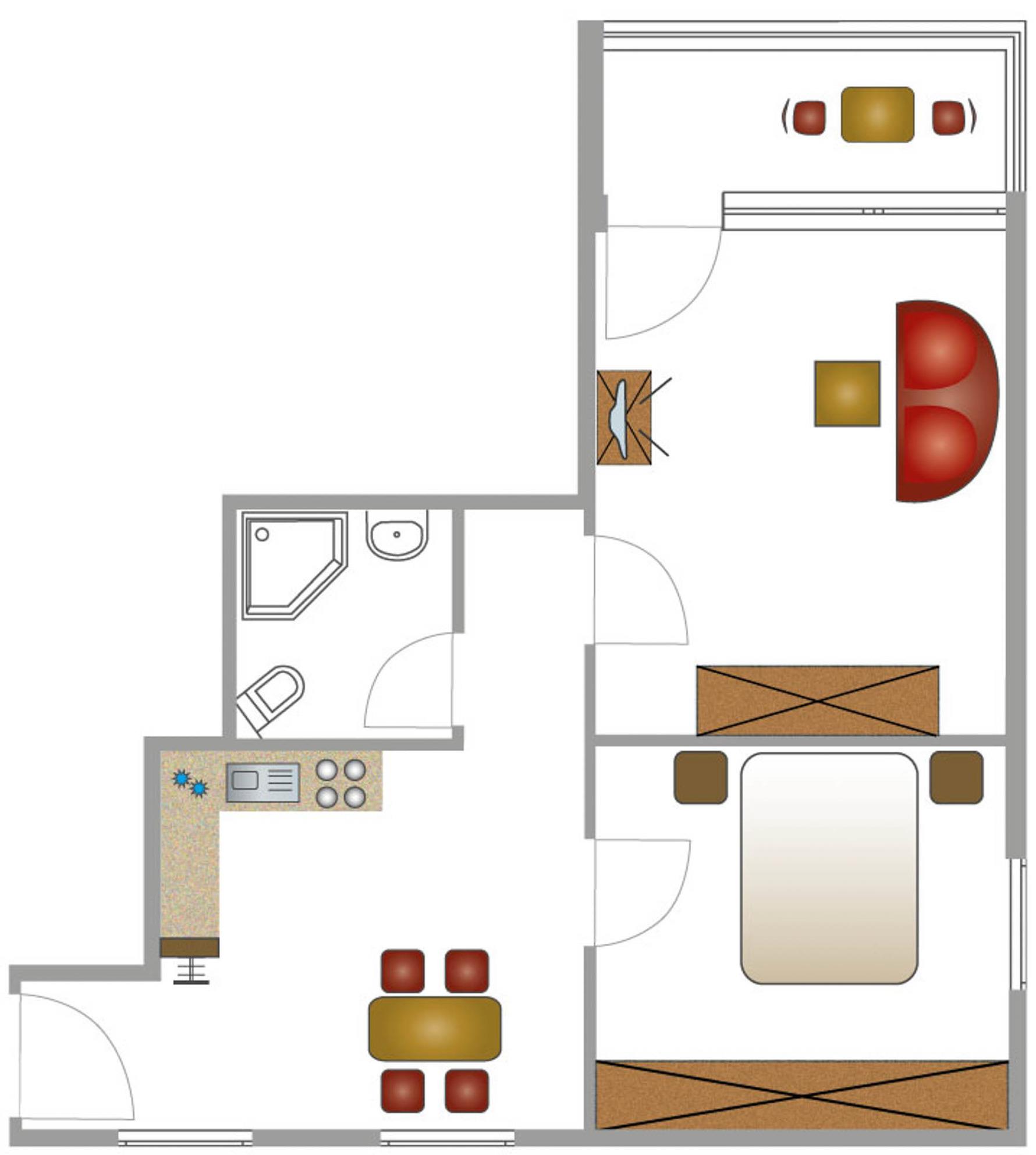 - Wohn-/Schlafzimmer, 25 m², 2 Personen