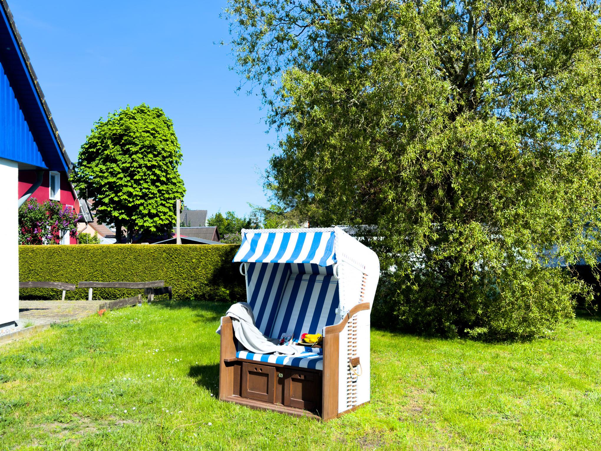Umzäunter Garten mit eigenem Strandkorb an der Unterkunft