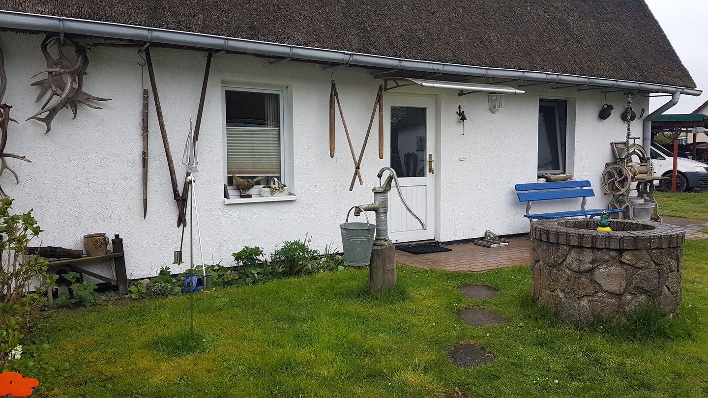 Unser Ferienhaus "Hagebutte" hat traditionell ein Rohrdach, eine begrünte Südterrasse (unverbauter Blick), einen separat abschließbaren Hauswirtschafts- und Fahrradraum.