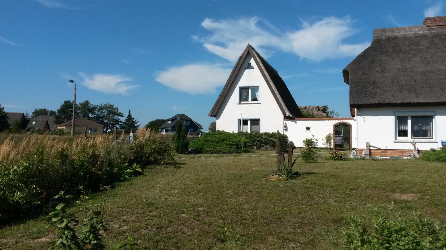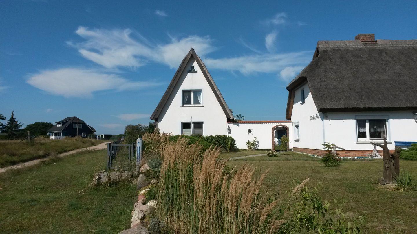 Gemütliches Ferienhaus "Hagebutte" in Wieck mit Rohrdach, Südterrasse und Boddennähe für Naturfreunde und Familien.