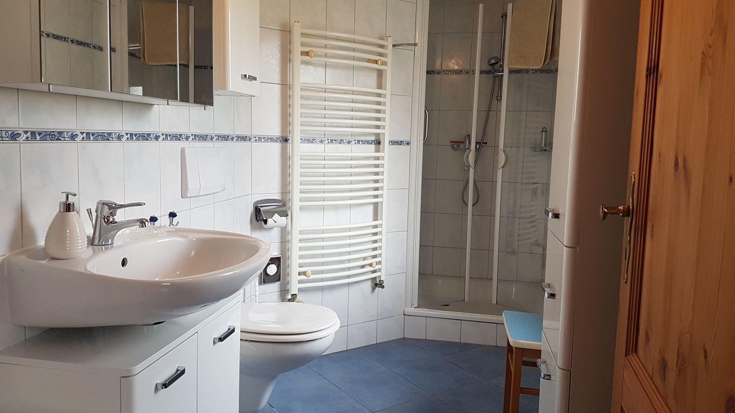 Das Bad ist mit Heizung und Fußbodenheizung ausgestattet. Boddennähe 200 m, seperater Eingang.