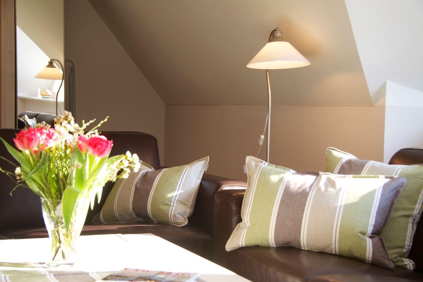 Die Ferienwohnung 4 bietet eine gehobene Ausstattung, Sauna, Kaminofen und freies W-LAN.