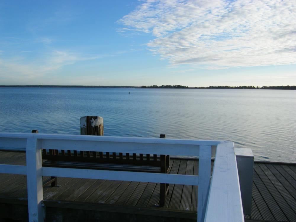 Der große nach Süden ausgerichtete Terrassenbereich bietet ausreichendes Sitzmobiliar für alle Bewohner des Hauses. Von der Terrasse können Sie- wenn auch durch Bäume und das Ferienhaus Admirals Corner Luv eingeschränkt - den Bodden sehen.