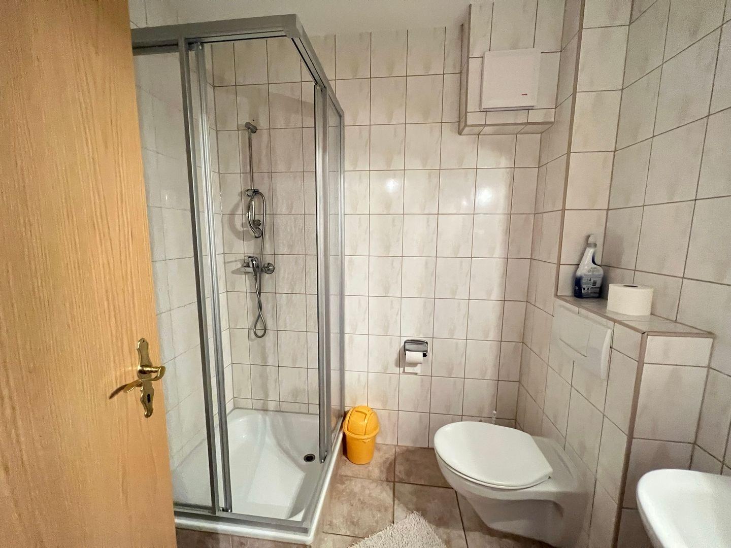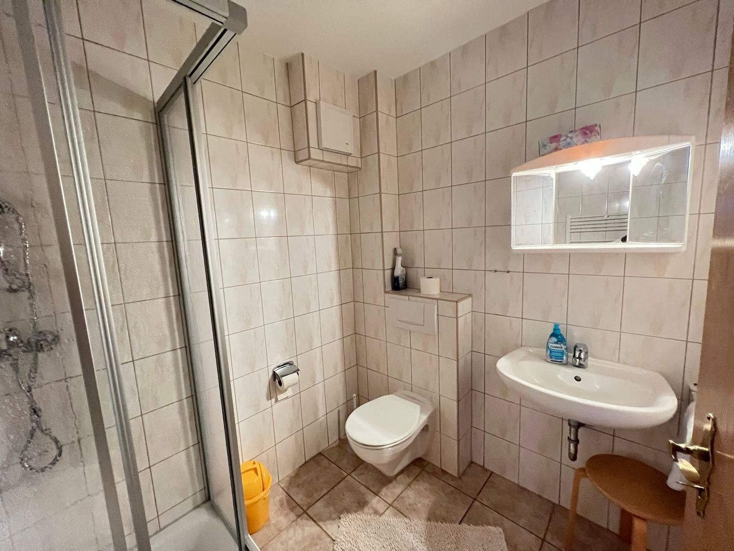 Das Bad verfügt über eine Dusche, WC, Warmwasser Heizung.
