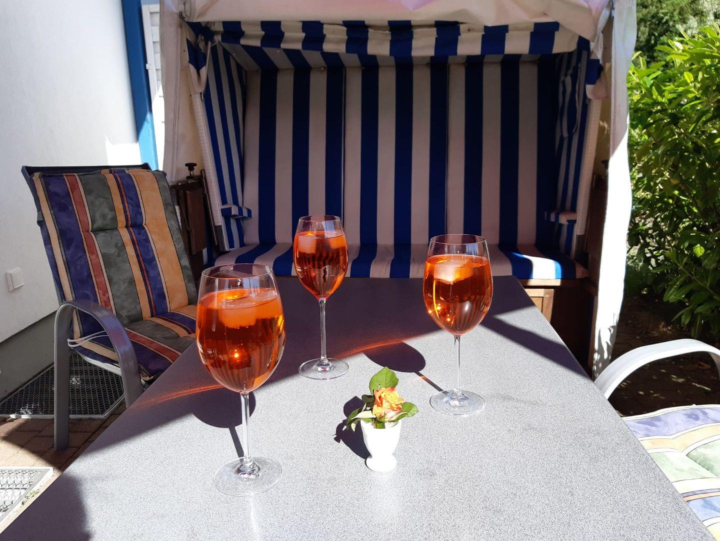 Im Keller des Hauses finden Sie eine gemeinschaftlich, aber abschließbare Fahrradunterstellmöglichkeit. Die sonnige Südterrasse ist mit einem Strandkorb, Gartenmöbeln, Sonnenliegen und einem Sonnenschirm ausgestattet.