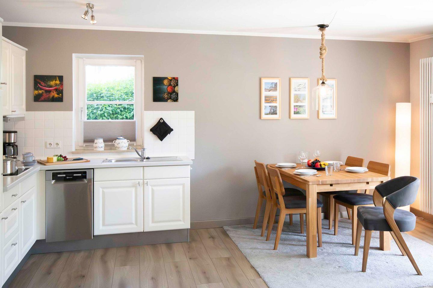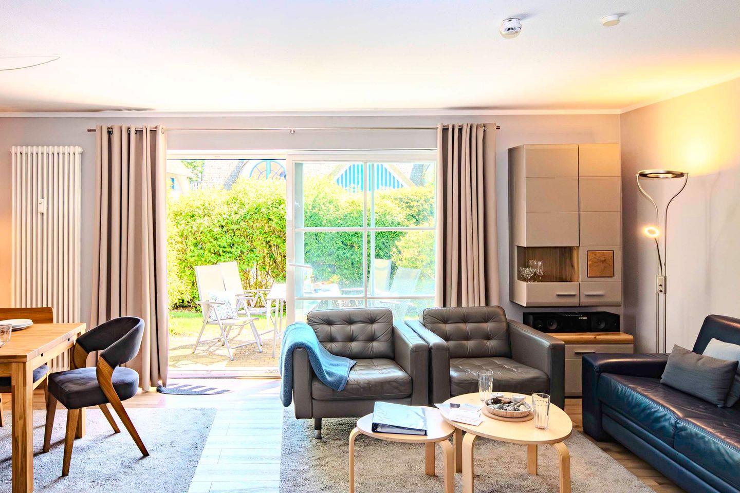 Stellen Sie sich vor, Sie betreten Ihr 62 m² großes Urlaubszuhause im Erdgeschoss, perfekt für bis zu 4 Personen. Der geräumige Wohn- und Essbereich, ausgestattet mit einer vollfunktionalen Küche und einer bequemen Schlafcouch, öffnet sich zu einer Welt voller Licht und Grün, dank der großzügigen Fensterfront. Hier können Sie morgens Ihren Kaffee genießen, während die ersten Sonnenstrahlen Ihren Tag begrüßen. Schlendern Sie hinaus auf Ihre private Südterrasse, ein perfekter Rückzugsort, um die Seele baumeln zu lassen und die Natur in vollen Zügen zu genießen. Die Wohnung bietet nicht nur einen eigenen Parkplatz und Fahrradabstellplatz, sondern auch Annehmlichkeiten wie eine Waschmaschine und einen Trockner (gegen Gebühr), die Ihren Aufenthalt so komfortabel wie möglich gestalten. Eine High-Speed-WLAN-Verbindung und ein Flachbild-TV sorgen für Unterhaltung. Die Küche lässt keine Wünsche offen: von einem Küchenmixer über einen Toaster bis hin zur Filterkaffeemaschine. Das moderne Badezimmer mit Dusche/WC und Haartrockner sorgt für zusätzlichen Komfort. Das Schlafzimmer verspricht süße Träume mit einem gemütlichen Doppelbett, ergänzt durch praktische Fliegengitter. Die Umgebung der Wohnung ist ideal für Familien und bietet Aktivitäten wie Kitesurfen, Radfahren und vieles mehr.