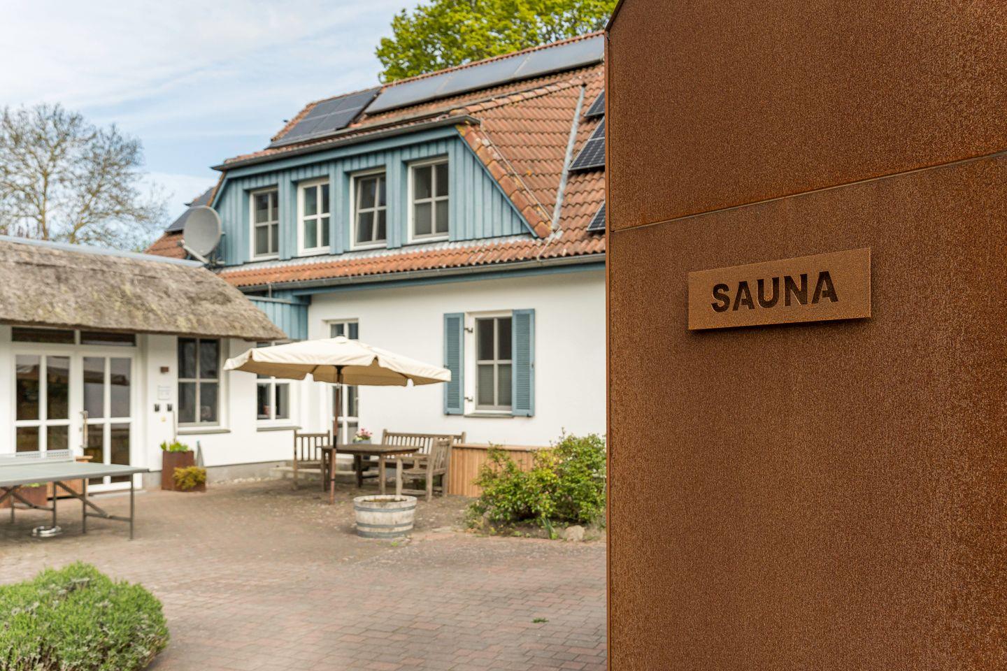 Moderne barrierefreie Ferienwohnung in Wieck am Darß mit Terrasse, Sauna und großem Garten für Natur- und Aktivurlaub.