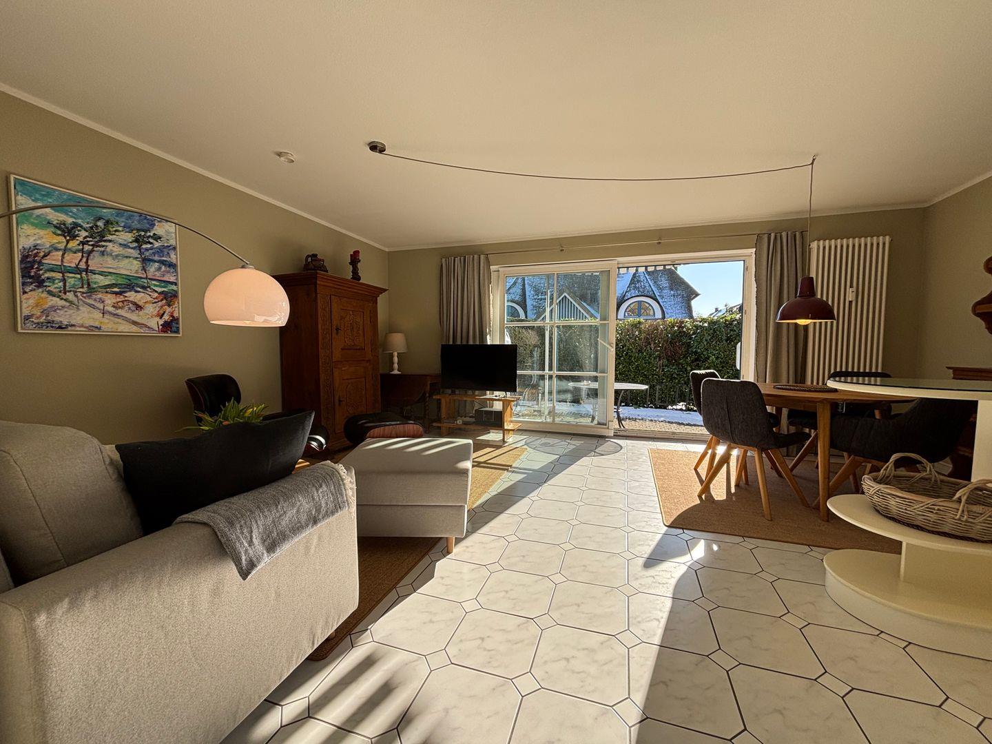 2025 wurde die lichtdurchflutete Erdgeschosswohnung mit Südterrasse modernisiert und liebevoll eingerichtet.