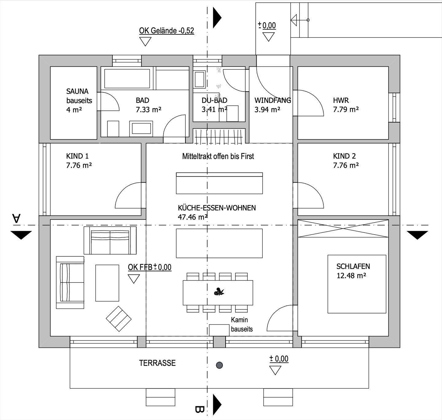 Zwei moderne Bäder, eines davon mit Sauna und Badewanne, laden zum Abschalten und Wohlfühlen ein.