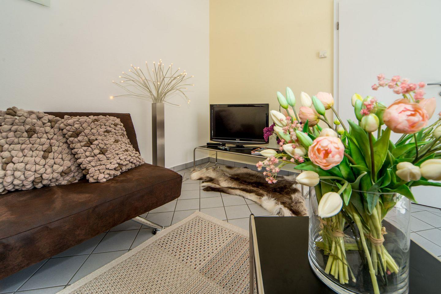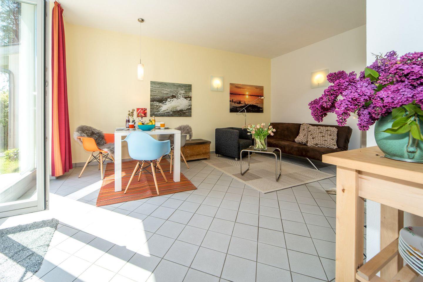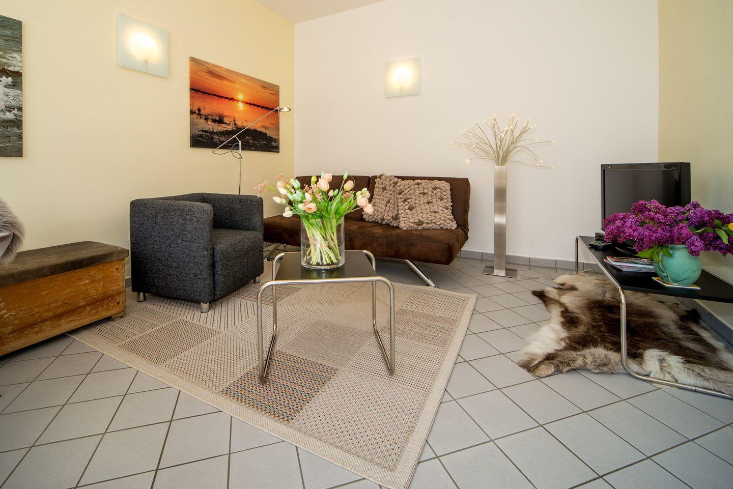 Haustierhalter können nach Rücksprache ein Haustier (maximal ein Tier) mitbringen. Die Unterkunft ist darüber hinaus böllerfrei, wodurch sie besonders für ruhige Urlaubstage geeignet ist. Die Atmosphäre des Hauses ist modern und freundlich, während die Fliesenböden sowohl im Wohn- als auch im Schlafzimmer eine angenehme Sauberkeit und Frische vermitteln.