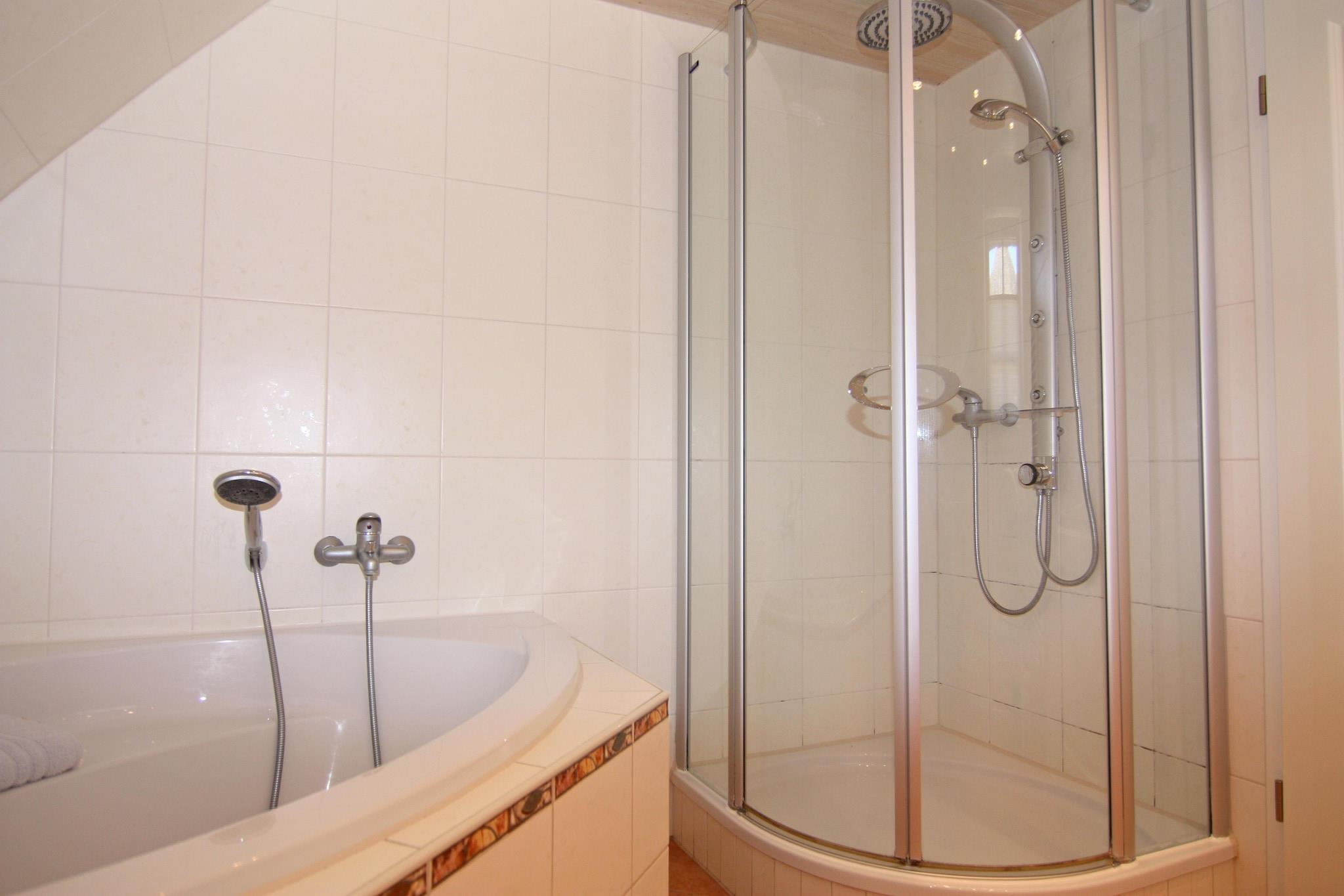 In der 1. Etage: (offene Küche(Esstisch, Wasserkocher, Toaster, Kochherd(4 Kochplatten, Ceranfeld), Dunstabzugshaube, Kaffeemaschine, Backofen, Mikrowelle, Spülmaschine, Kühlschrank(+ Gefrierfach)), Wohn/Esszimmer(TV(Satellit), Kaminofen, Radio, CD-Spieler, Heizung(Öl)), Schlafzimmer(Doppelbett), Schlafzimmer(Einzelbett), Badezimmer(Badewanne, Dusche, Waschbecken, Toilette, Föhn), Flur) Terrasse, Gartenmöbel, Parkplatz, Handtücher/Bettwäsche (extra Gebühr)