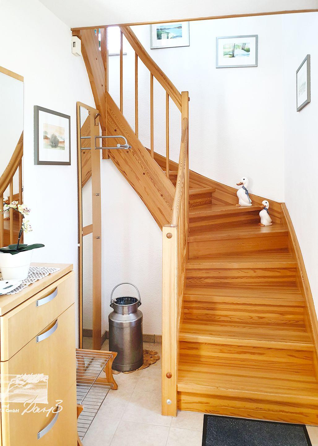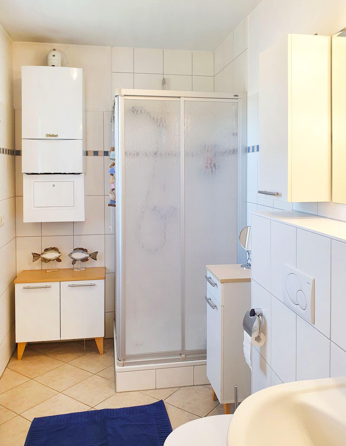 Ferienhaus bis 4 Personen + Baby | ca. 70 m2 Wohnfläche | EG Wohnzimmer, integrierte Küche mit Küchenzeile und Essbereich, Bad mit Dusche, Hauswirtschaftsraum | OG 2 Schlafzimmer, Gäste-WC | 2 Terrassen | 2 Parkplätze | Wohnzimmer Ecksofa, Flachbild-SAT-TV, Stereoanlage | Integrierte Küche Essbereich mit Tisch und 4 Stühlen, Küchenzeile mit Herd (Cerankochfeld), Backofen, Geschirrspüler, Kühlschrank mit Gefrierfach, Kaffeemaschine, Toaster, Wasserkocher, Mikrowelle | 1 Bad mit Dusche und WC im EG, Gäste-WC im OG | 2 Schlafzimmer | SZ 1 mit Doppelbett | SZ 2 mit 2 Einzelbetten | Garten, Terrassenmöbel, Reisebett und Kinderhochstuhl vorhanden, Fliegenschutzgitter, Fahrradschuppen, WLAN kostenfrei