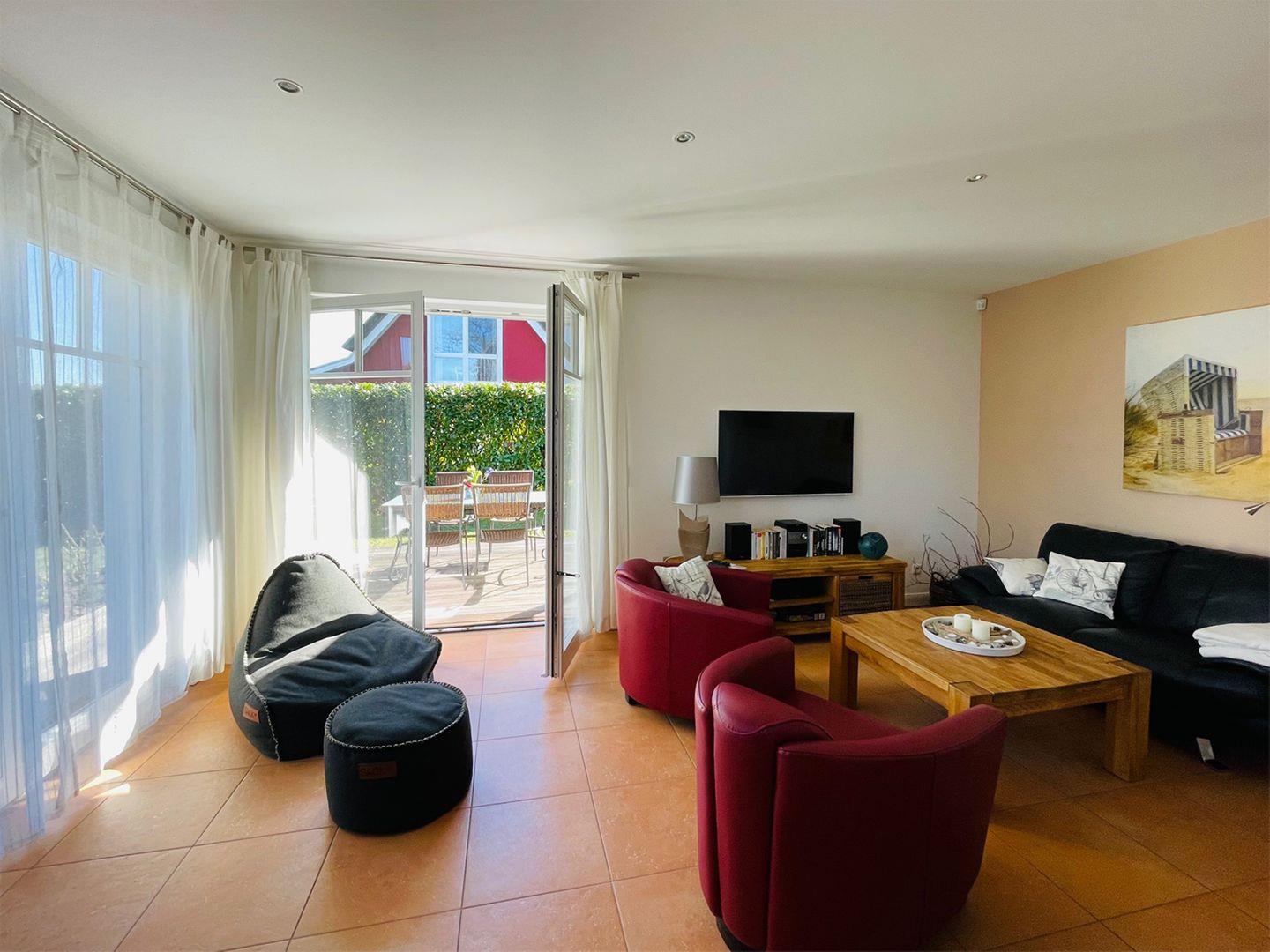 Gemütliche Ferienhaushälfte in Wieck auf dem Darß mit Sauna, Kamin, Garten und WLAN für erholsame Urlaubstage.