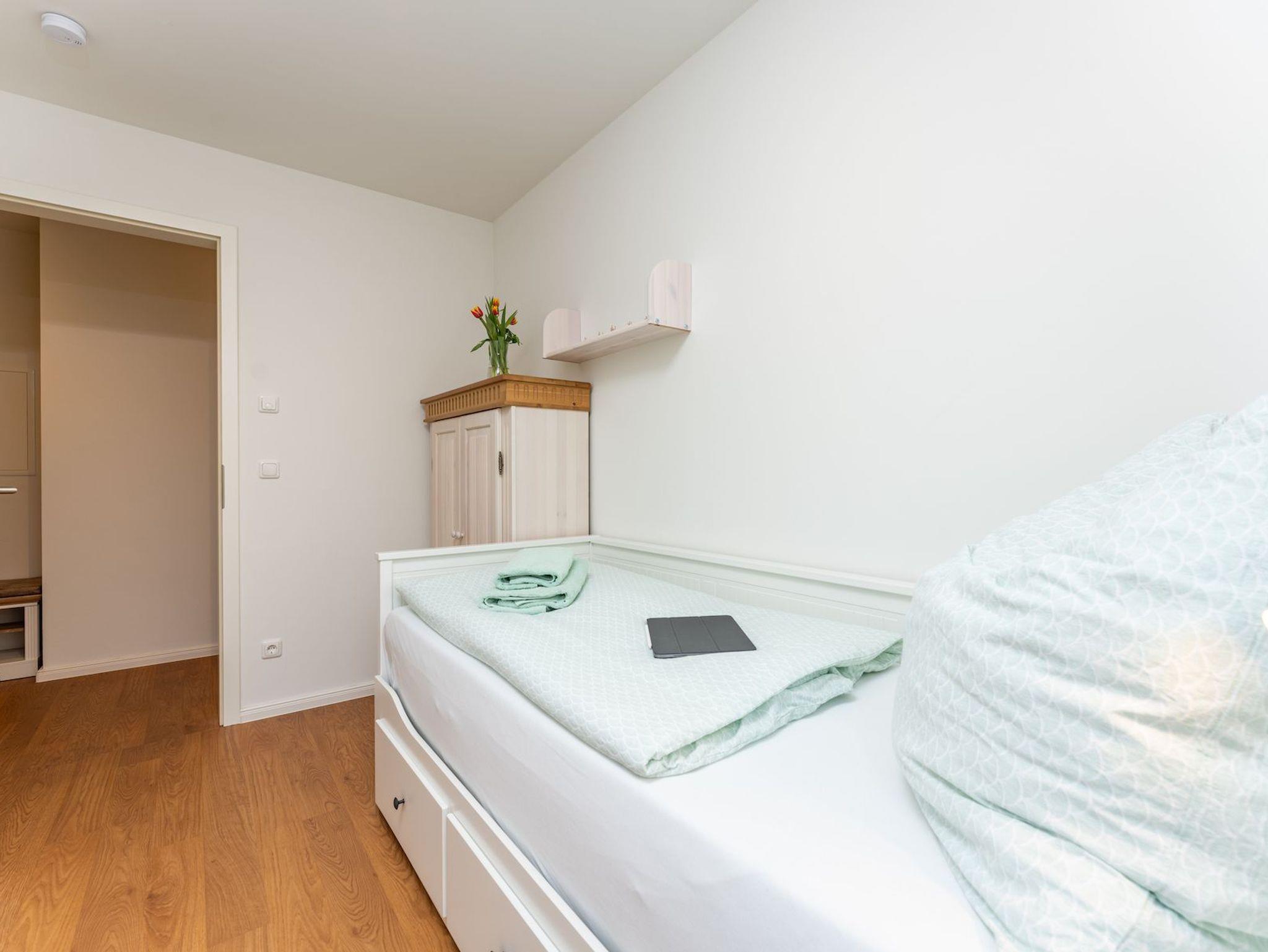 Moderne Ferienwohnung in Wieck am Darß mit zwei Schlafzimmern und WLAN, ideal für Rad- und Naturfreunde.
