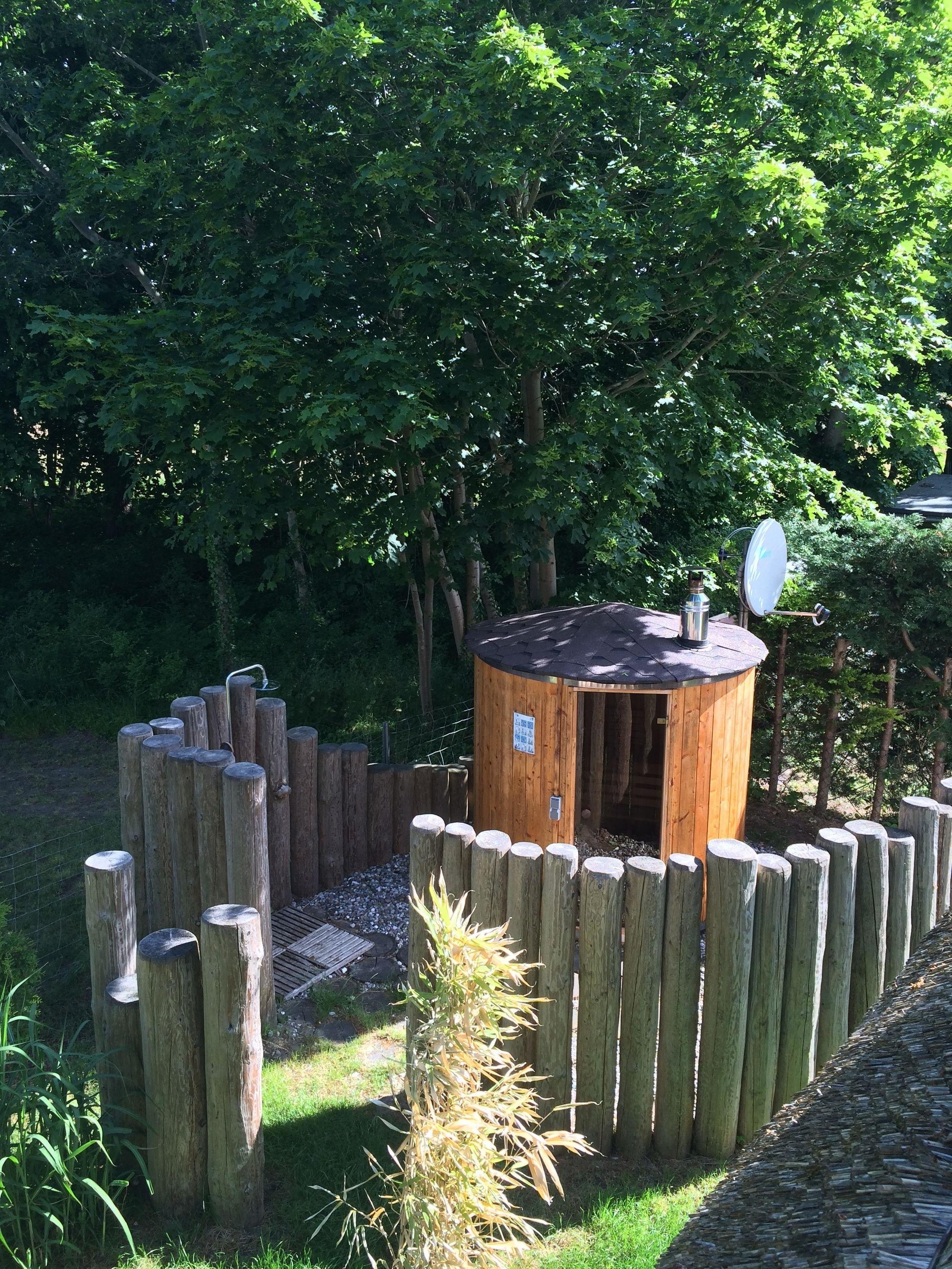 Neben einer 10 qm großen Sonnenterrasse im Süden verfügen Sie über eine Liegewiese, einen Grillplatz, an dem die Sonne bis zum Abend hinein ungehindert strahlt und einer Saunalandschaft im Freien. Auf dem Gelände befindet sich ein abschließbarer Fahrradschuppen und ein kostenloser Parkplatz.