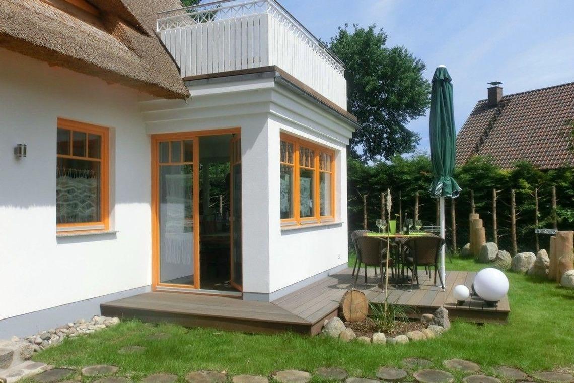Charmantes Reetdachhaus in Wieck mit modernem Komfort und idyllischer Lage für erholsame Urlaubstage.