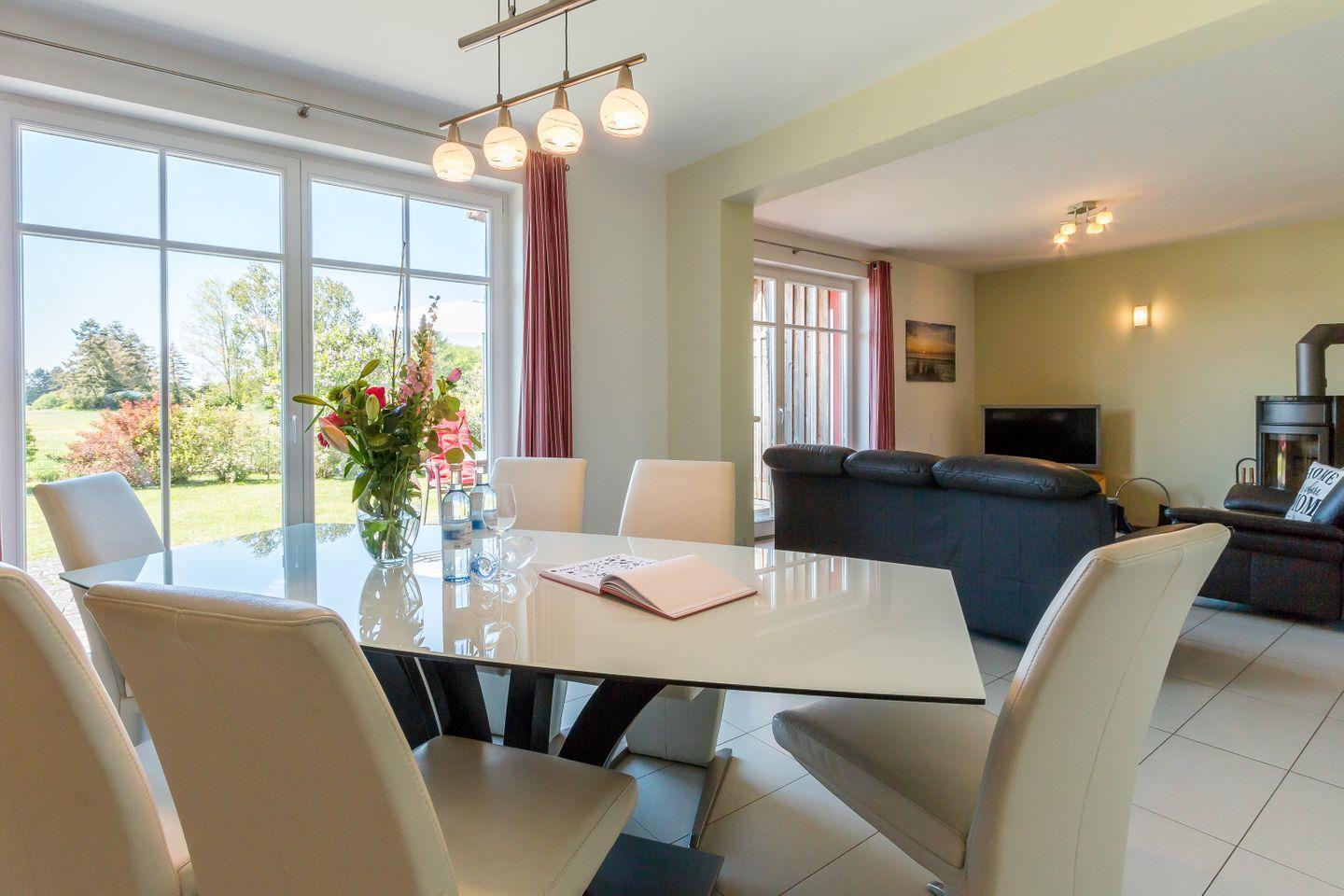 Modernes Ferienhaus in Wieck am Darß mit Kamin, Sauna und Panoramablick auf die Boddenwiesen.