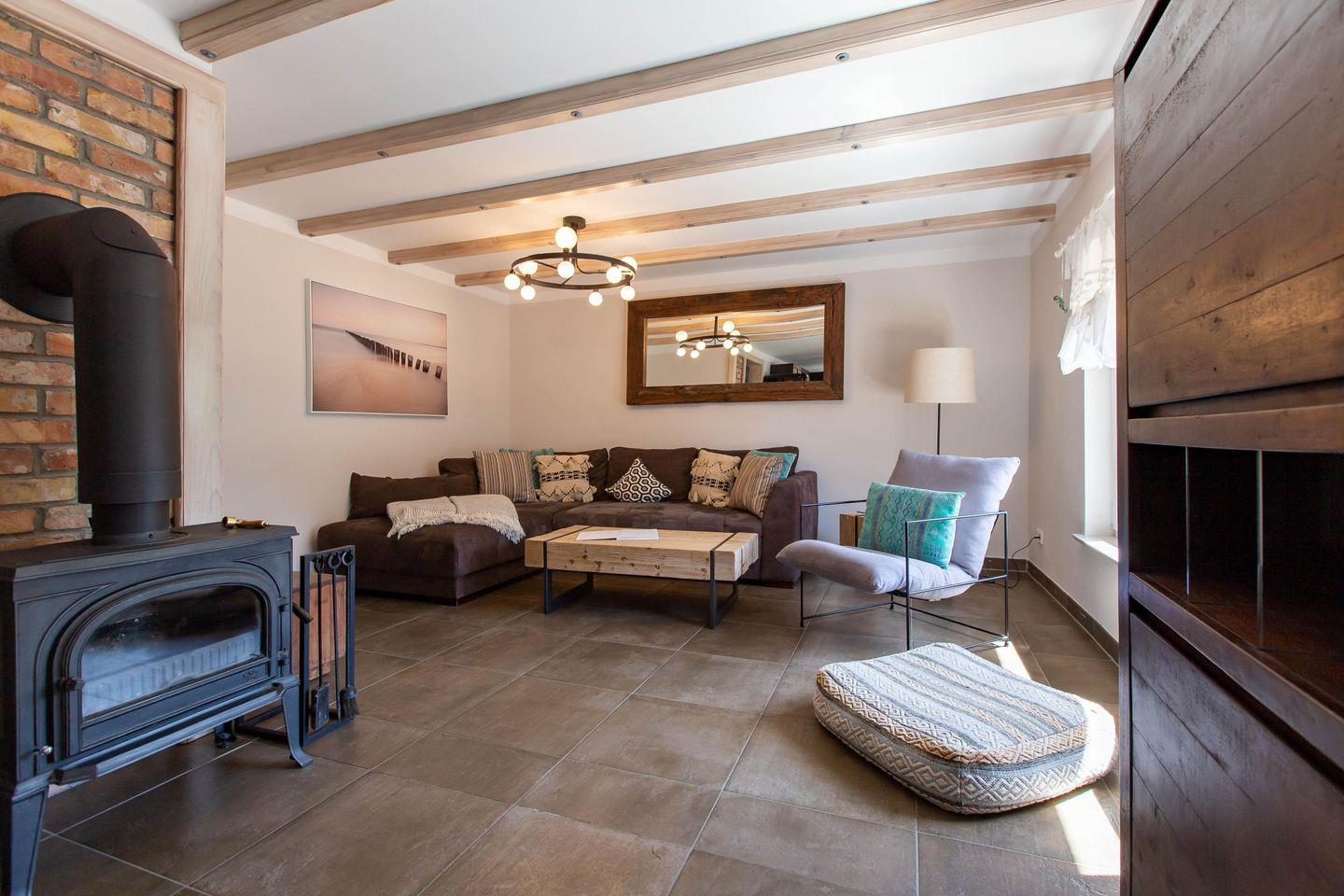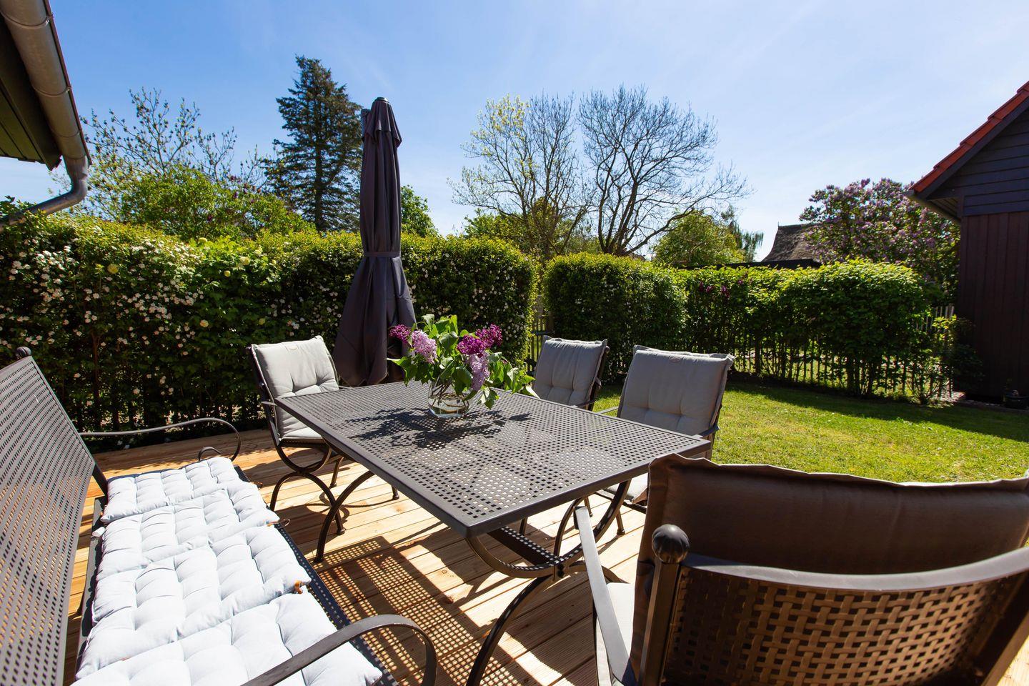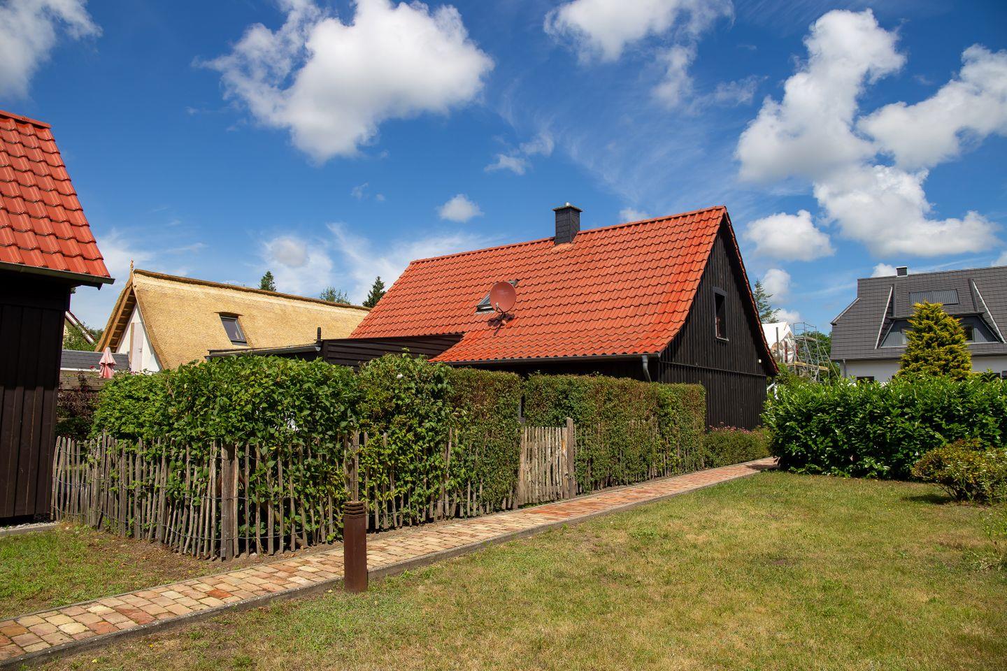 Charmantes Ferienhaus Sonnenwieck 01 in Wieck am Darß mit Naturgrundstück, Kamin und barrierefreiem Komfort für erholsame Urlaubstage.