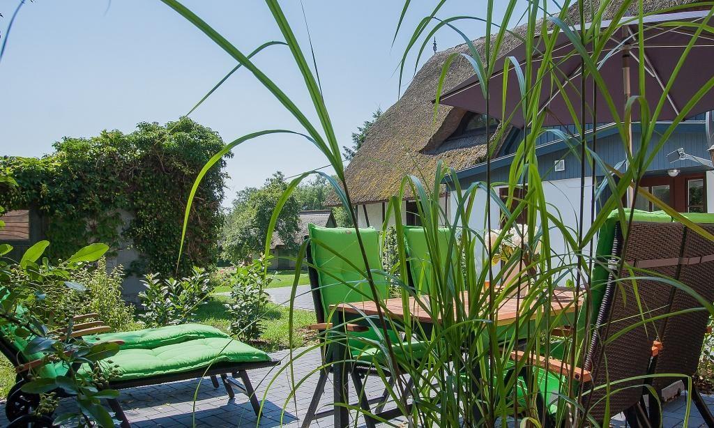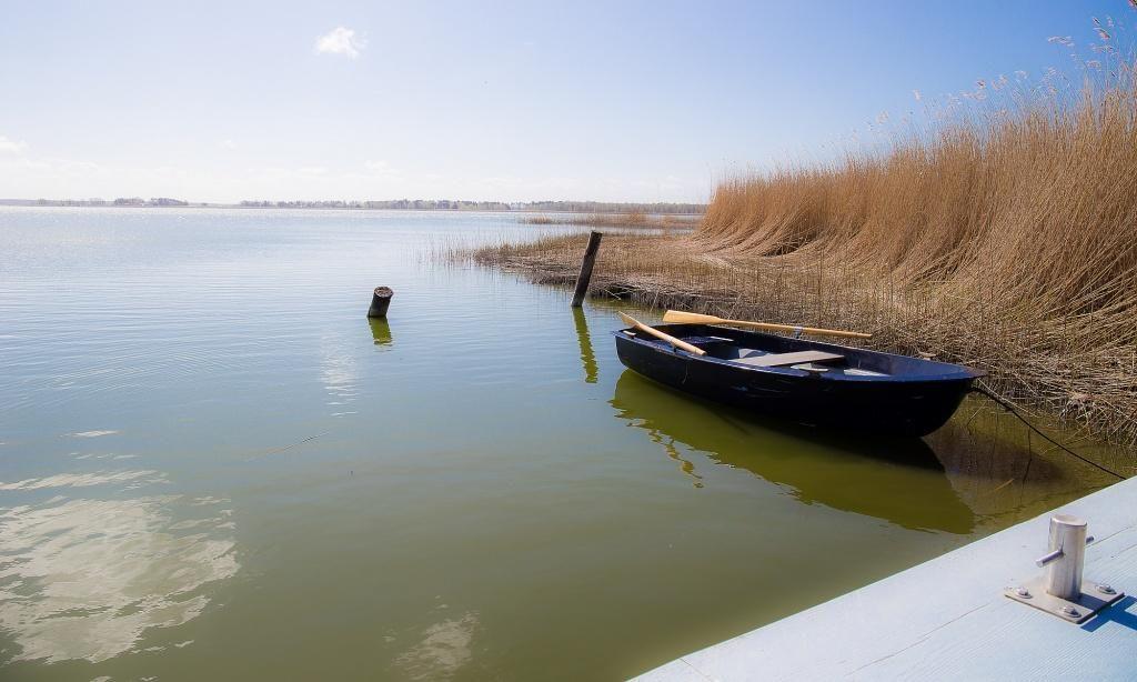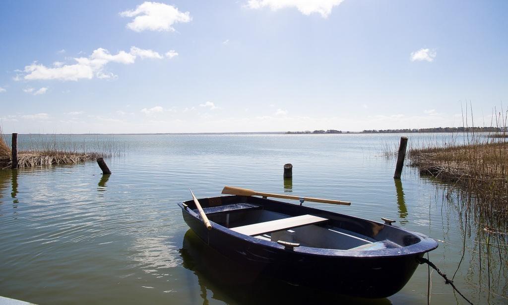 Genießen Sie die ruhige Ferienwohnung Schilfkante mit Boddenblick und eigenem Bootsanleger in Wieck am Darß.