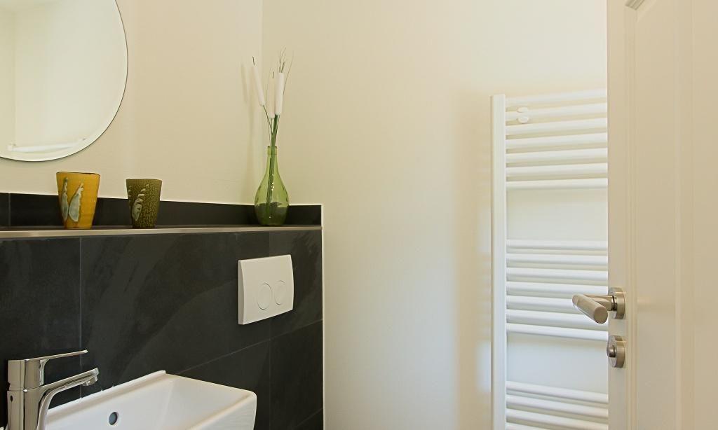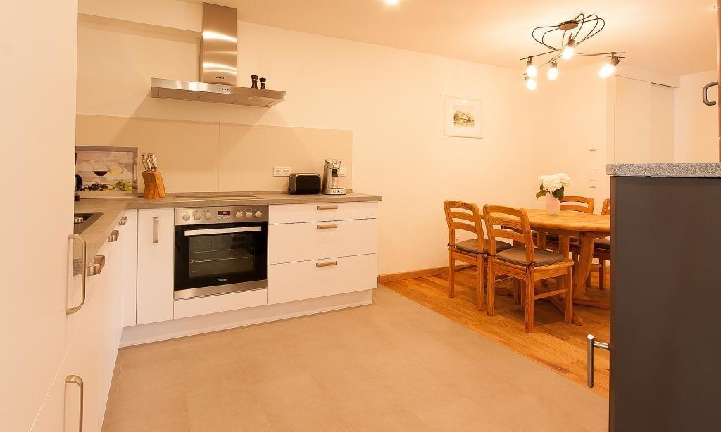 Die Erdgeschosswohnung verfügt über einen großzügigen Wohnraum mit einer gemütlichen Sitzecke. Die hochwertige Küchenzeile und der angrenzende Essbereich separieren sich vom Wohnbereich. Ein Kaminofen sorgt für Behaglichkeit. Weiterhin gibt es zwei Schlafzimmer, die jeweils mit einem Doppelbett ausgestattet sind. Das Tageslicht-Bad mit Dusche/WC und ein Gäste-WC finden außerdem Platz. Ein Terrasse mit Blick in den Garten gehört selbstverständlich zur Wohnung dazu und beschert dir erholsame Stunden.