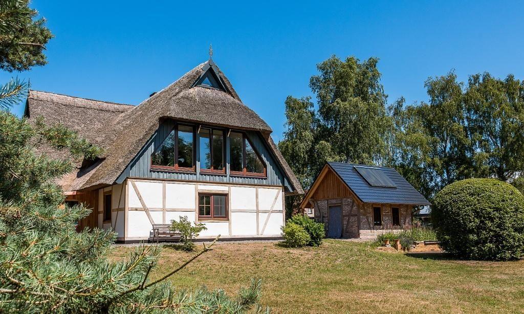 Auf einem traumhaften und weitläufigen Wassergrundstück in direkter Boddenlage befindet sich dieses Ferienhaus und beherbergt drei Wohneinheiten. Der Charme des Hauses mit ortstypischer Rohreindeckung spricht für sich. Das Objekt verfügt sogar über einen eigenen Bootsanlegeplatz. Mit dem hauseigenen Ruderboot steht einer Boddentour nichts im Wege. Betrete das Grundstück und genieße die Ruhe und den einmaligen Blick auf den Bodden. Willkommen im Urlaub, hier ist Erholung garantiert!