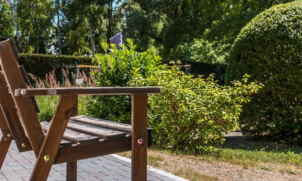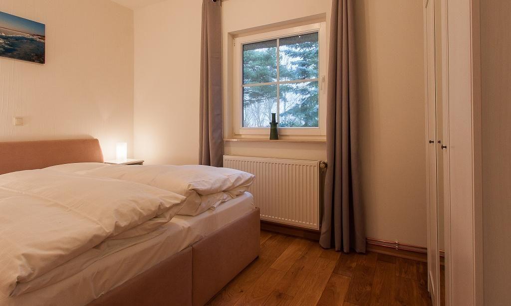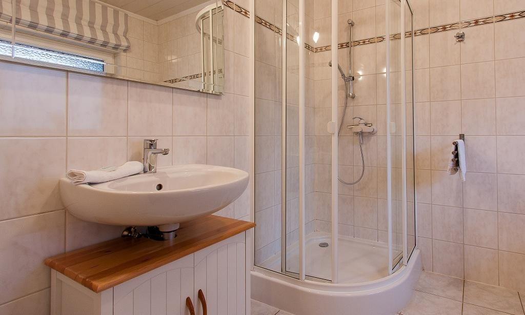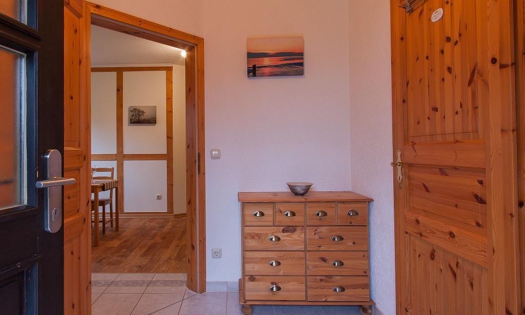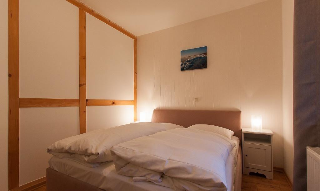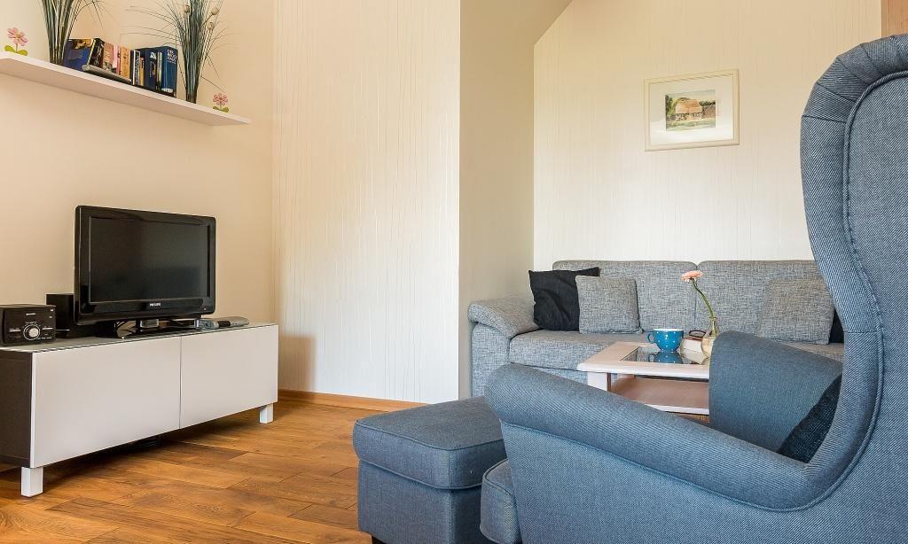 Die Erdgeschosswohnung empfängt seine Gäste im einladenden Wohnraum. Hier befindet sich eine gemütliche Sitzecke sowie eine kleine Küchenzeile mit dem Essbereich. Weiterhin gibt es ein Schlafzimmer, dass mit einem Doppelbett ausgestattet ist. Das Tageslicht-Bad mit Dusche/ WC schließt sich direkt an. Eine Terrasse mit wunderschönem Blick in den Garten gehört selbstverständlich dazu. Hier kannst du erholsame Stunden nach einem ereignisreichen Tag verleben.
