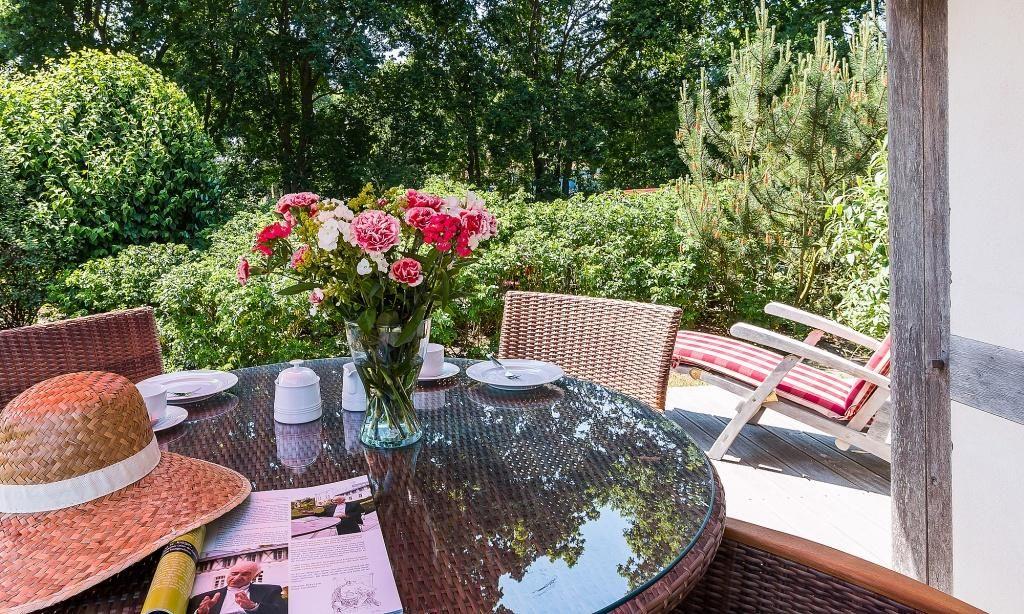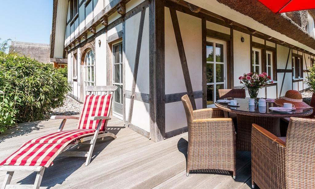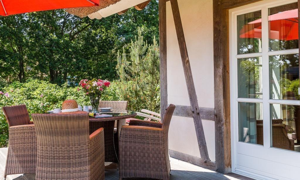 Charmantes Ferienhaus "Dat Fachwerkhus 02" bei Wieck am Bodden mit Kamin und Terrasse.