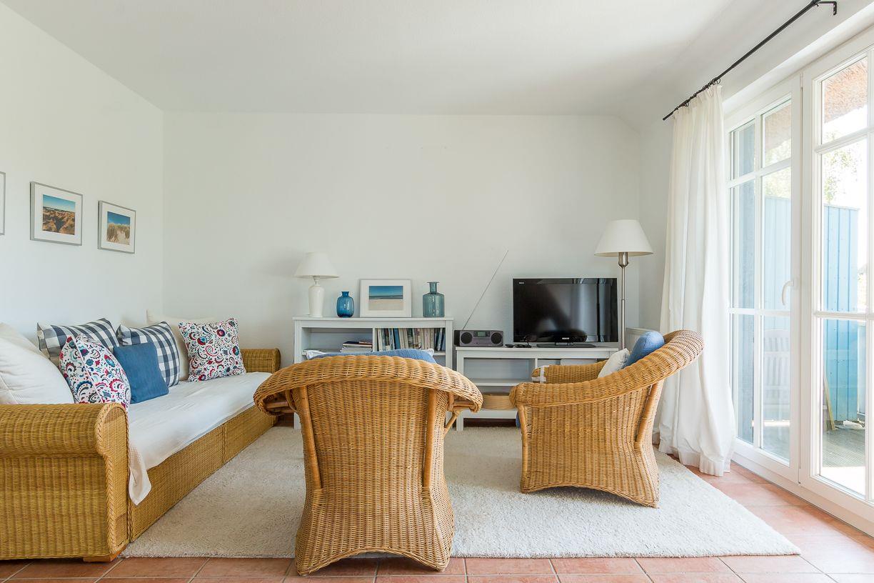 Traumhaft idyllisch – mit Blick über Reetdächer in die weite Wiesenlandschaft – befindet sich diese hübsche Ferienwohnung in einem Mehrfamilienhaus unter Reet. Hier kannst du Ruhe genießen und den Blick schweifen lassen. Dank der zentralen Lage bist du schnell am Hafen von Wieck. Mit Badestelle, Fischbrötchenverkauf, Spielplatz und Zeesbootfahrten ist der lauschige Boddenabschnitt ein beliebter Anlaufpunkt für Jung und Alt. Das ehemalige Fischerdorf Wieck steht für sanften Tourismus. Ob zu Fuß oder mit dem Rad – mit der Ferienwohnung Wiesenidyll hast du den perfekten Ausgangspunkt für Entdeckungstouren entlang der Boddenwiesen und durch den Darßer Urwald bis zum wildromantischen Weststrand.