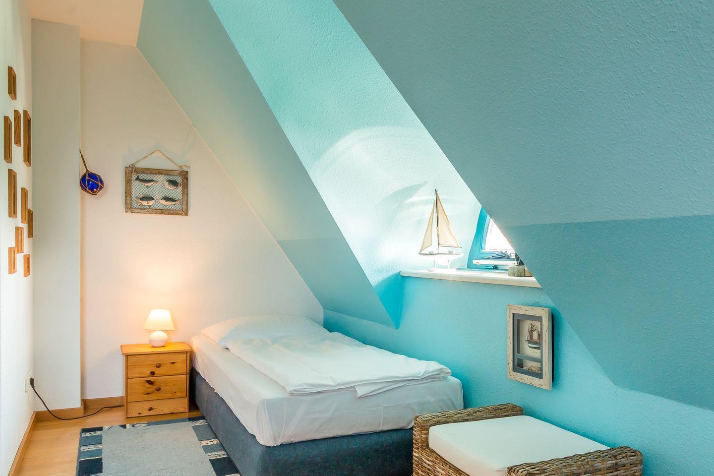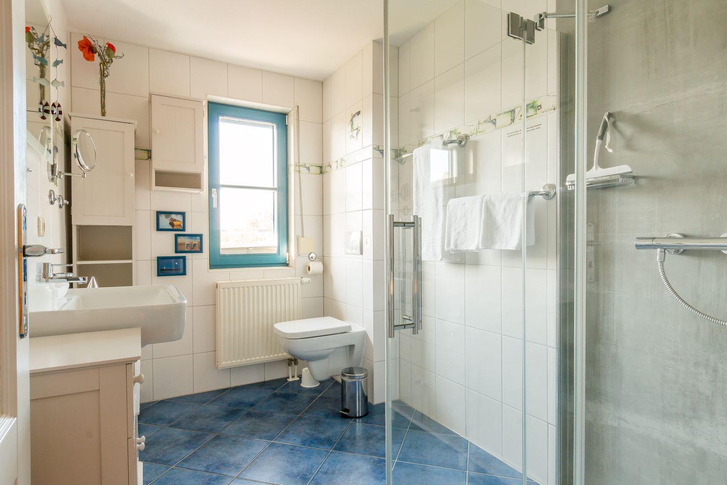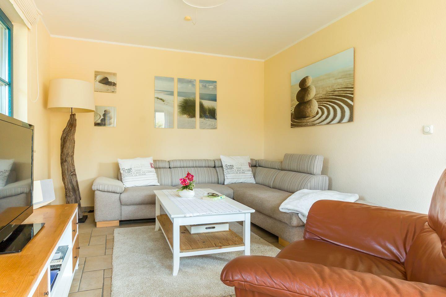 Im Erdgeschoss befindet sich der helle, freundliche Wohnraum mit einer gemütlichen Sitzecke sowie einem einladenden Essplatz. Die Küchenzeile ist integriert und schafft einen offenen Wohncharakter. Ebenfalls auf der unteren Etage: ein Gäste-WC und ein kleiner Flur. Das Obergeschoss beherbergt ein heimeliges Schlafzimmer mit einem Doppelbett sowie ein weiteres Schlafzimmer mit zwei Einzelbetten. Ein Schreibtisch und stabiles Internet stehen ebenfalls bereit, falls man den Urlaub mit der Arbeit verbinden möchte. Ein zweites Bad mit Dusche/WC auf der oberen Etage sorgt für zusätzlichen Wohnkomfort.