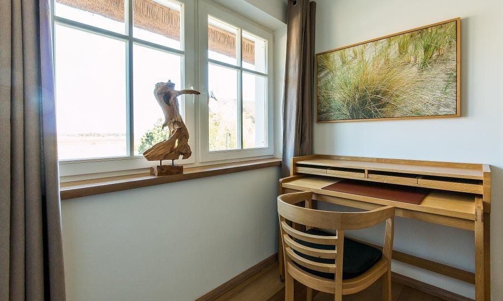 Im Erdgeschoss gelangst du über den abgeschlossenen Eingangsbereich mit Garderobe direkt in den offenen und lichtdurchfluteten Wohnbereich. Hier erwartet dich eine gemütliche Sitzecke am modernen Kamin. Ein großzügiger Essbereich und die hochwertige Einbauküche mit Kochinsel und Tresen sind perfekt aufeinander abgestimmt und fügen sich harmonisch ein. Hier kannst du gesellige Stunden mit deiner Familie verleben. Weiterhin befindet sich ein Gästebad mit Dusche/WC im Erdgeschoss. Das Obergeschoss beherbergt ein Schlafzimmer mit einem Doppelbett sowie ein luxuriöses Bad mit Badewanne, WC und Bidet. Der Spitzboden bietet ein zusätzliches Geschoss mit einer offenen Schlafgalerie und zwei Einzelbetten.