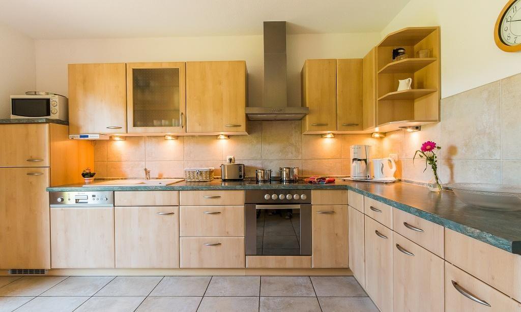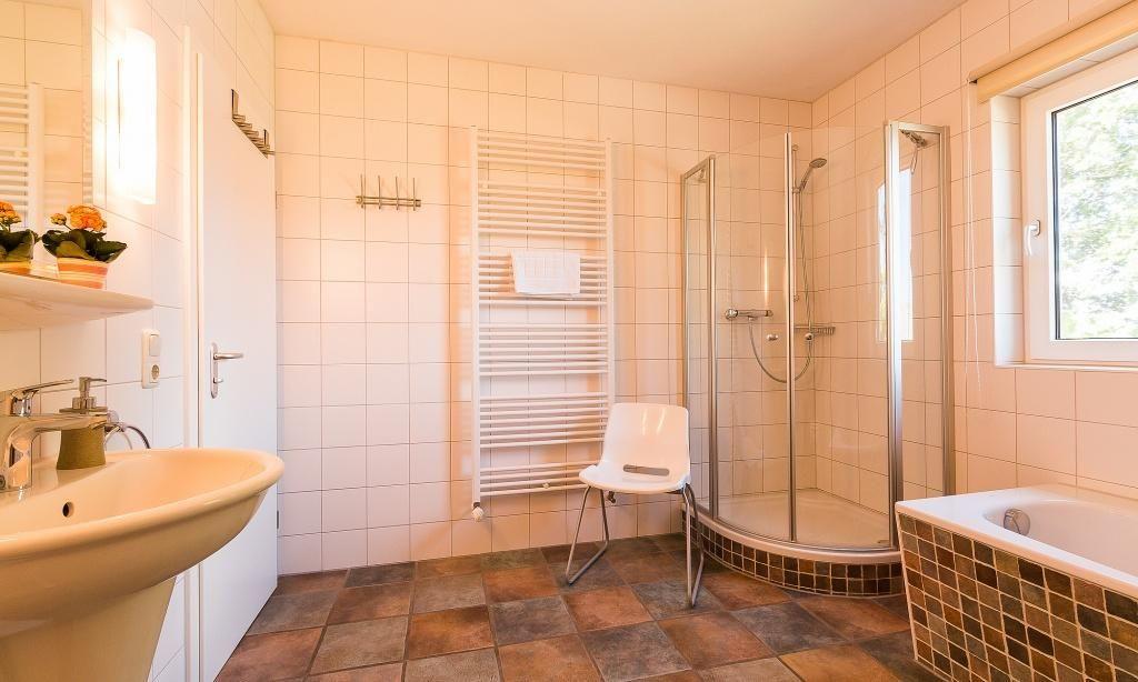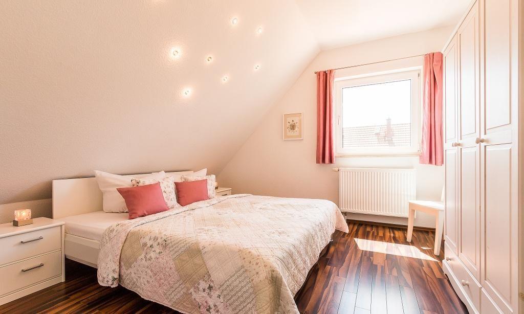 Im Erdgeschoss erwartet dich der helle und freundliche Wohnraum mit gemütlicher Wohnlandschaft und TV-Bereich sowie einem großzügigen Esstisch. Die Küche befindet sich separat und ist komfortabel ausgestattet. Auch ein Gäste-WC ist in der unteren Etage untergebracht. Das Obergeschoss verfügt über zwei Schlafzimmer. Eines ist mit einem Doppelbett und das weitere ebenfalls mit einem Doppelbett sowie einem zusätzliches Schlafsofa ausgestattet, welches als Aufbettungsmöglichkeit für ein Kind (4-13 Jahre) genutzt werden kann. Ein großes Bad mit Wanne und Dusche/WC befindet sich ebenfalls auf der Etage. Die komfortable Ausstattung und lichtdurchflutete Räume sorgen im gesamten Ferienhaus für eine angenehme Wohnatmosphäre.
