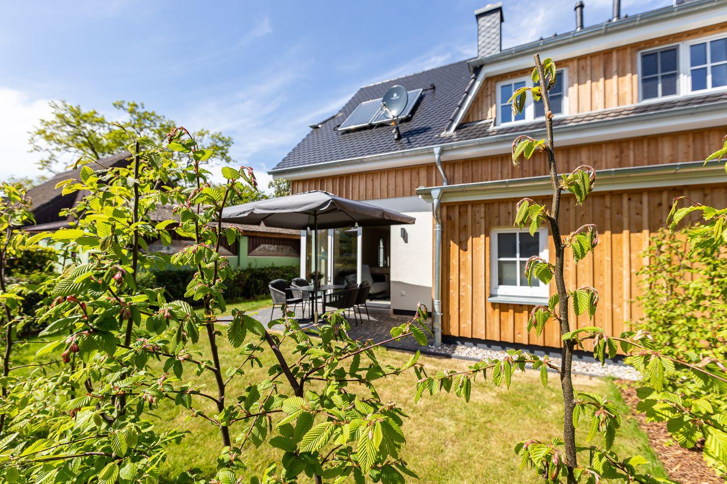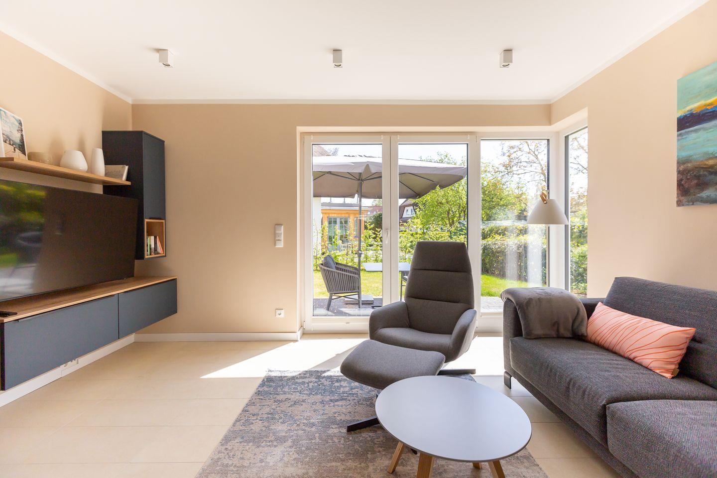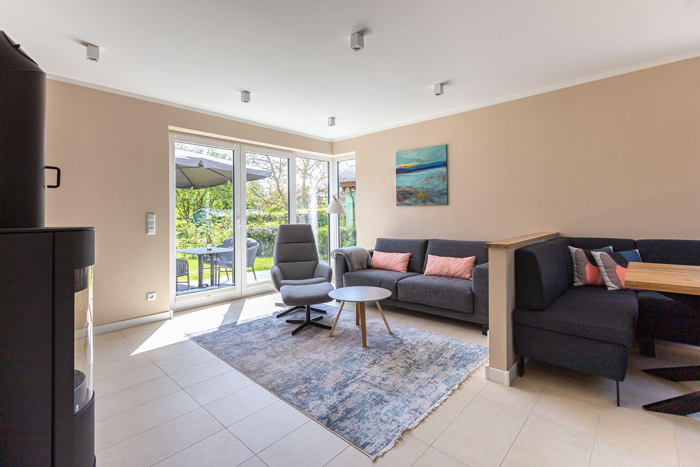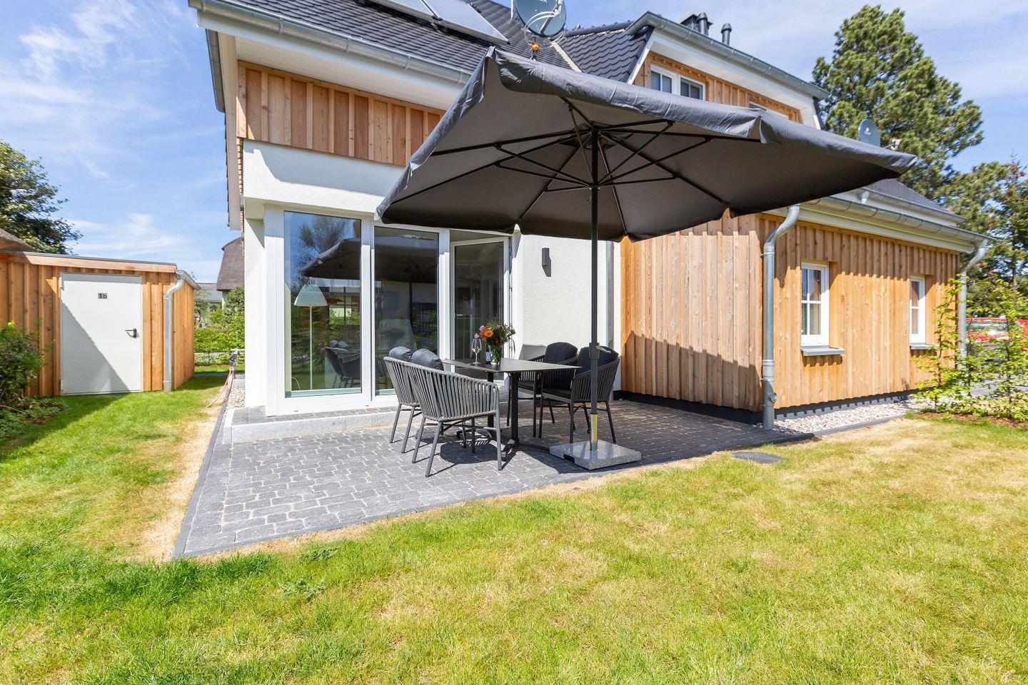 Modernes Ferienhaus Windlooper 2 in idyllischem Wieck mit Sauna und hochwertigem Design für erholsame Tage.