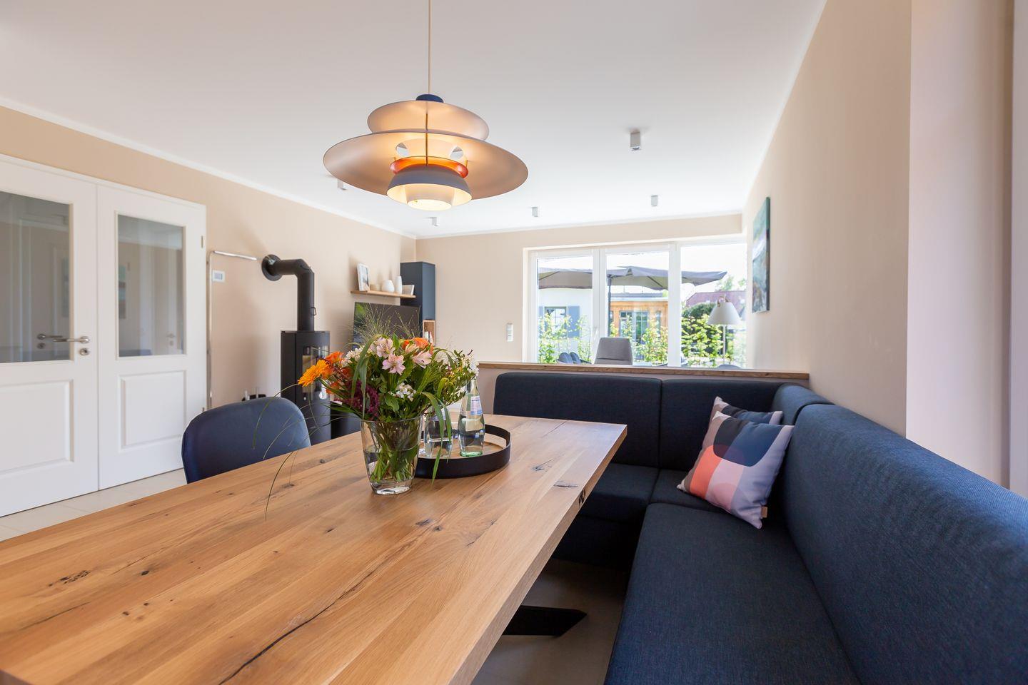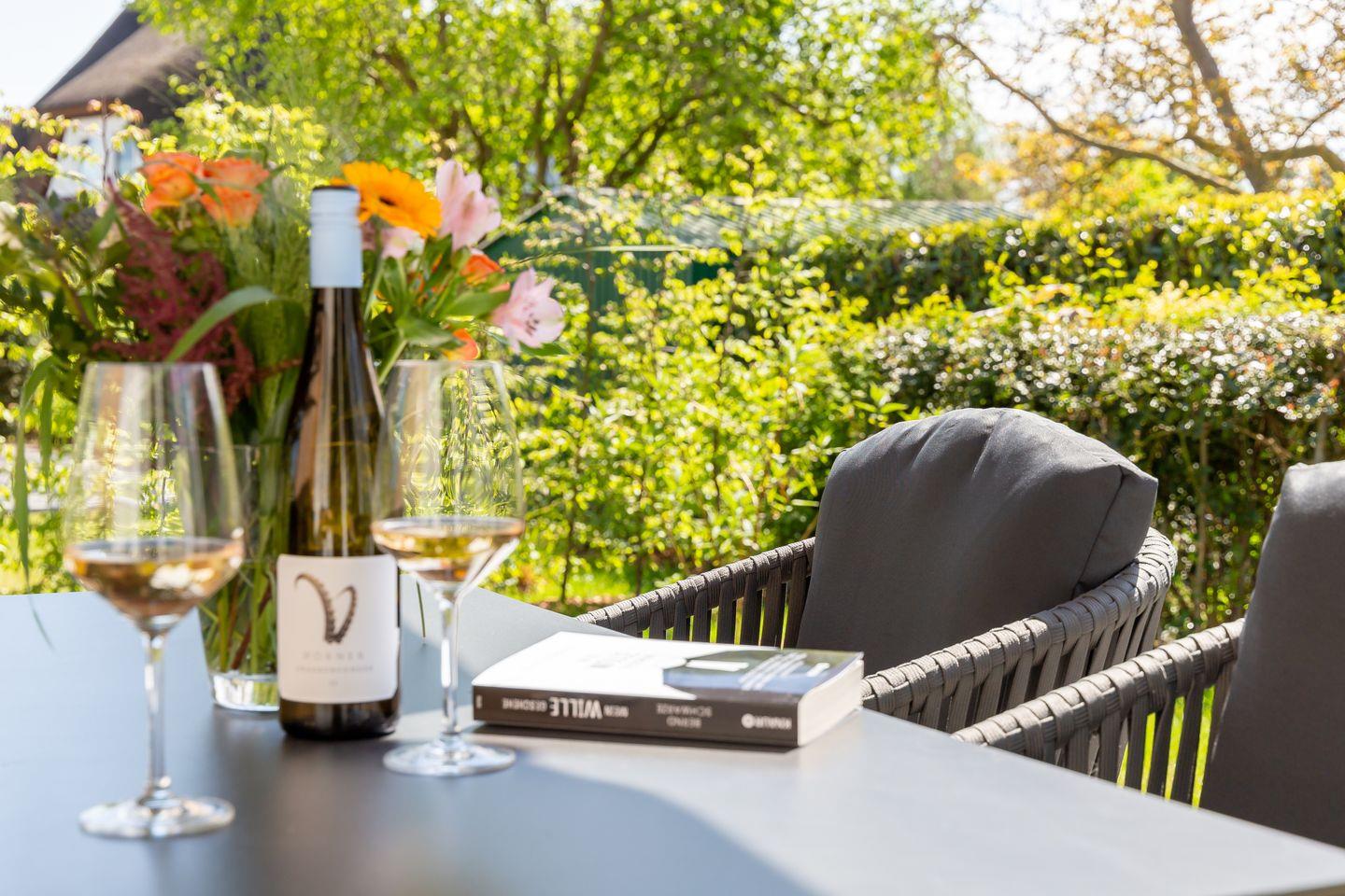 Der Außenbereich begeistert mit einem gepflegten Garten und zugehöriger Steinterrasse, die vor allem in den warmen Sommermonaten nach draußen lockt. Eine E-Bike-Ladestation, zwei PKW- und abschließbare Fahrradstellplätze im Gartenhaus stehen ebenfalls zur Verfügung. So klingt Ferienhausurlaub in einem der schönsten Dörfer der Halbinsel? Finden wir auch und wünschen schon jetzt einen traumhaften Aufenthalt.