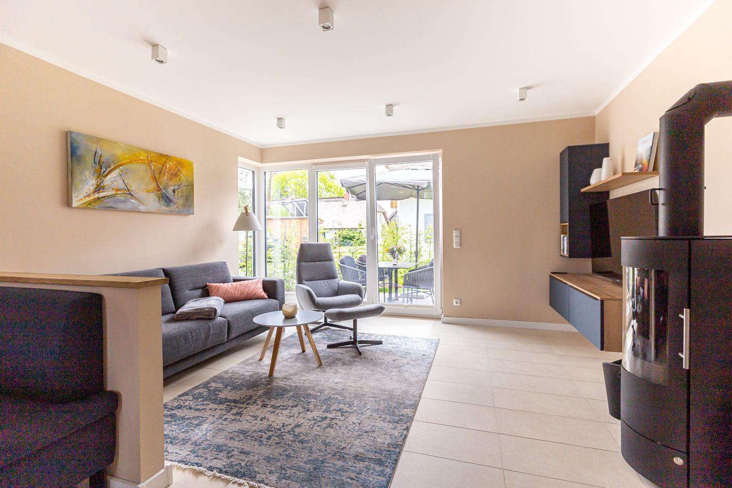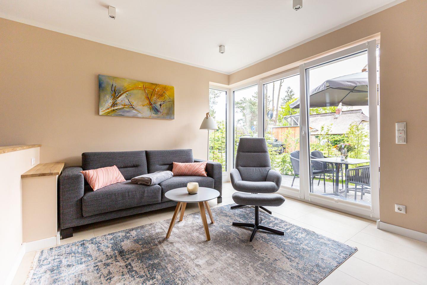 Modernes Ferienhaus Windlooper 1 in Wieck mit Sauna, Kamin und idyllischem Garten für erholsame Tage am Darß.